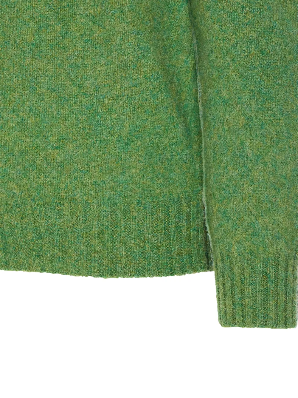 Зеленый шерстяной свитер с круглым вырезом и длинными рукавами