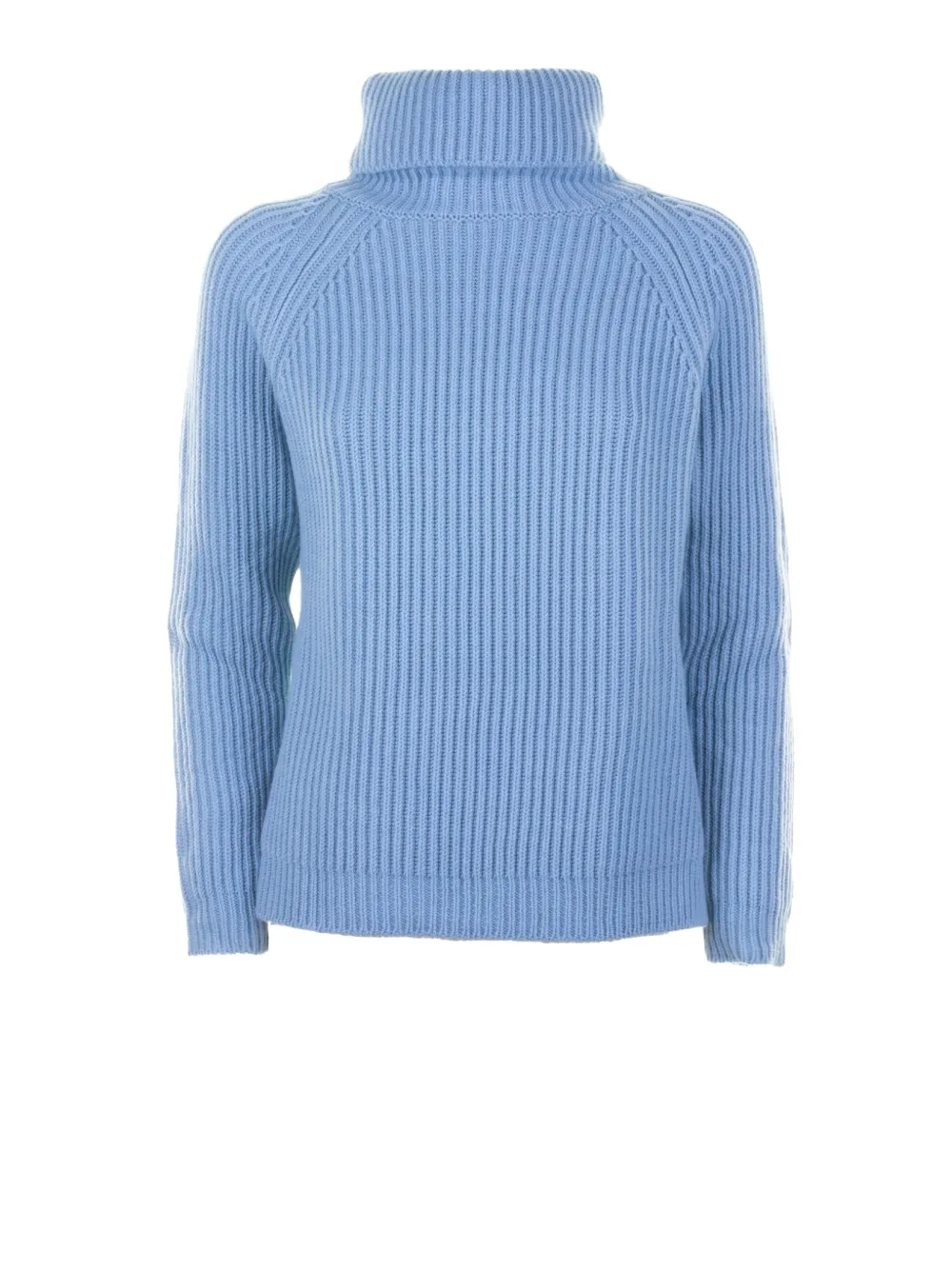 Светло-голубой вязаный гольф в рубчик с длинными рукавами из шерсти