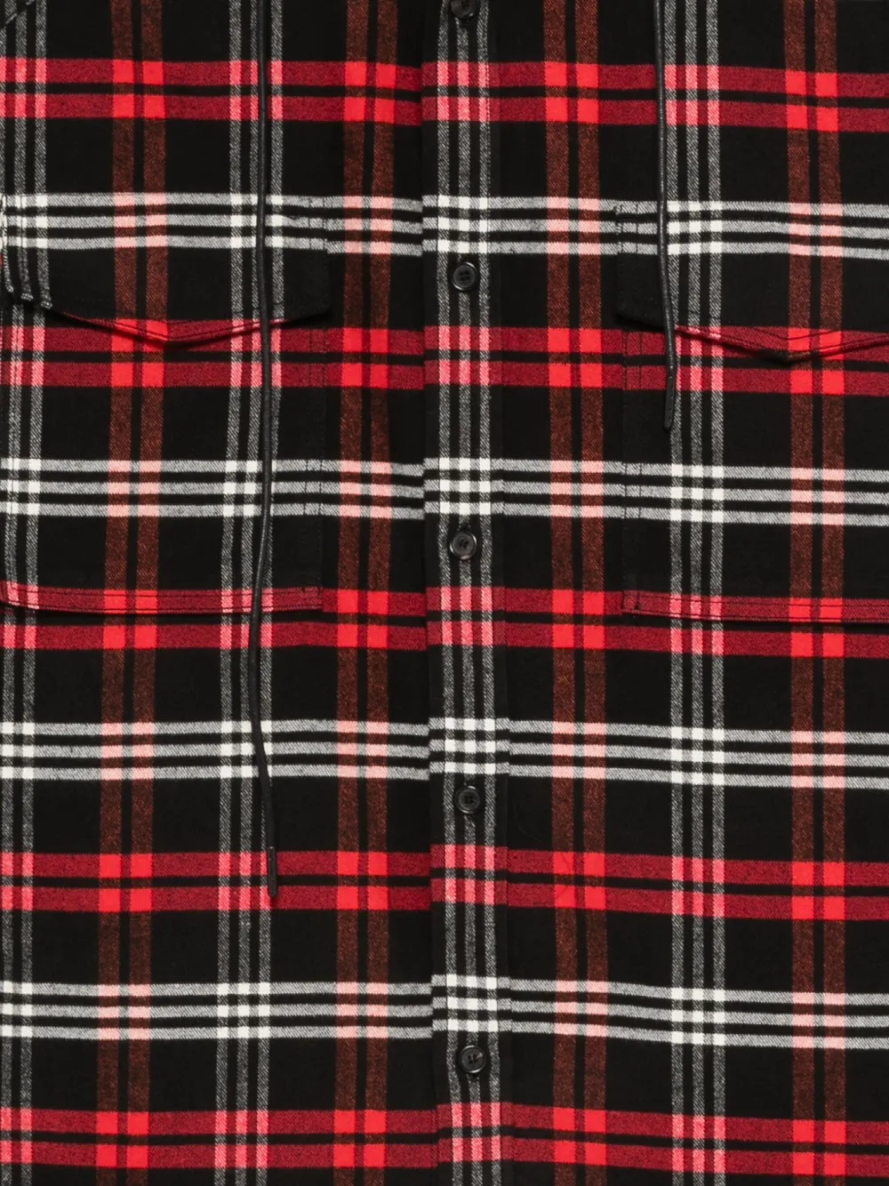Красная рубашка в клетку с капюшоном на завязках и длинными рукавами