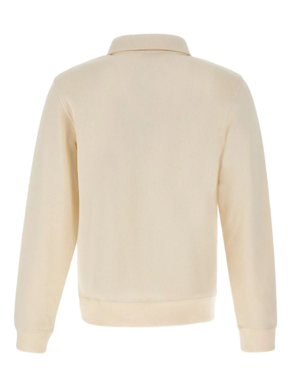 Кремовый цвет, застежка на пуговицы, длинные рукава, вышитый логотип