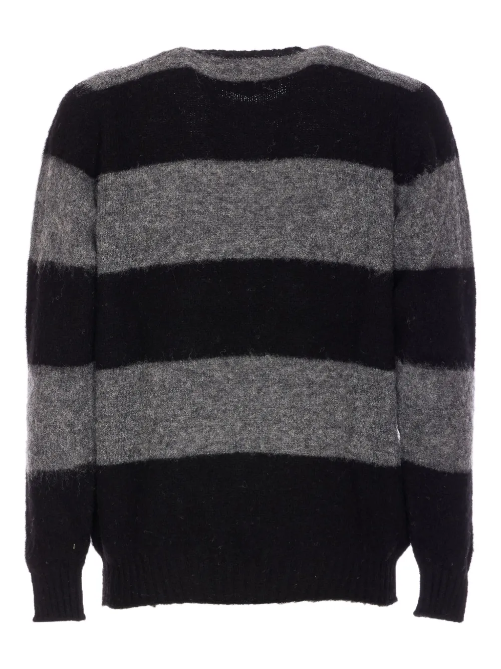 Черный свитер с узором в полоску, круглым вырезом и длинными рукавами