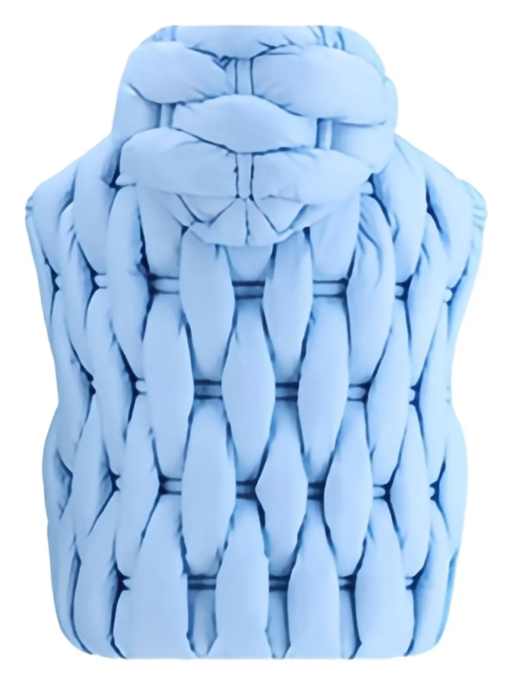 Небесно-голубой жилет с капюшоном, плетеным узором и застежкой-молнией