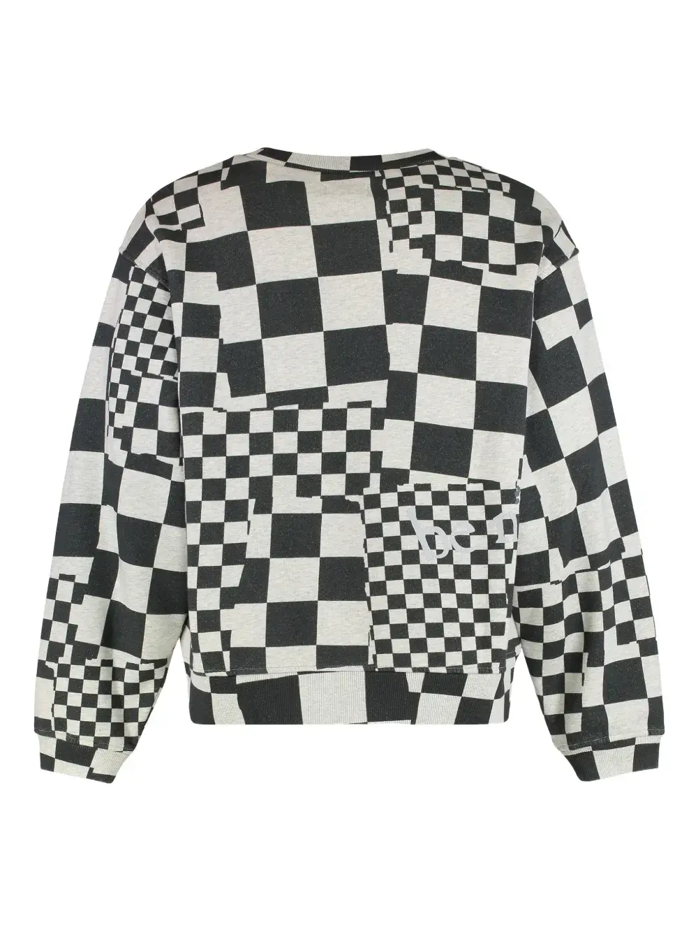 Черно-белый узор в клетку, круглый вырез, длинные рукава, ребристый край