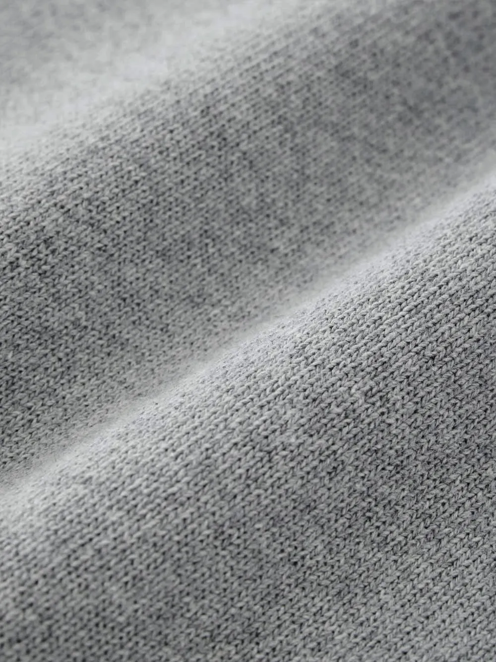 Серый меланжевый хлопок, заниженные плечи, ребристые манжеты и нижний край