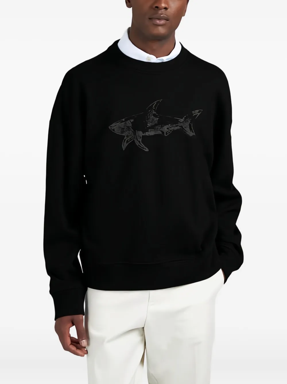 Хлопковый свитшот с принтом акулы Paul & Shark, черный