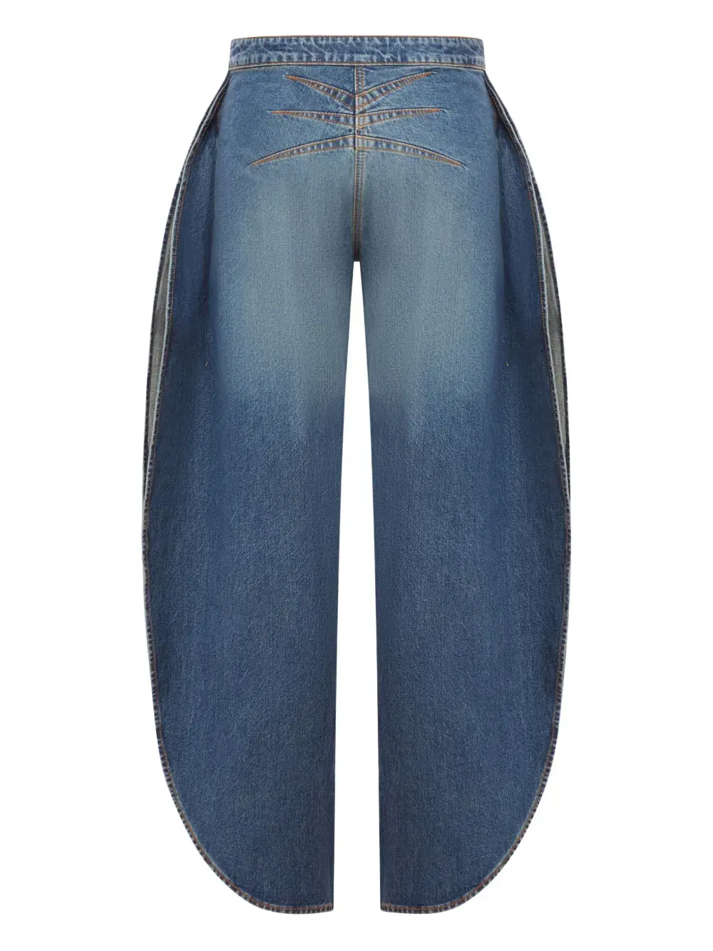 Выцветшие синие хлопковые брюки/джинсы с застежкой на молнию и двумя карманами