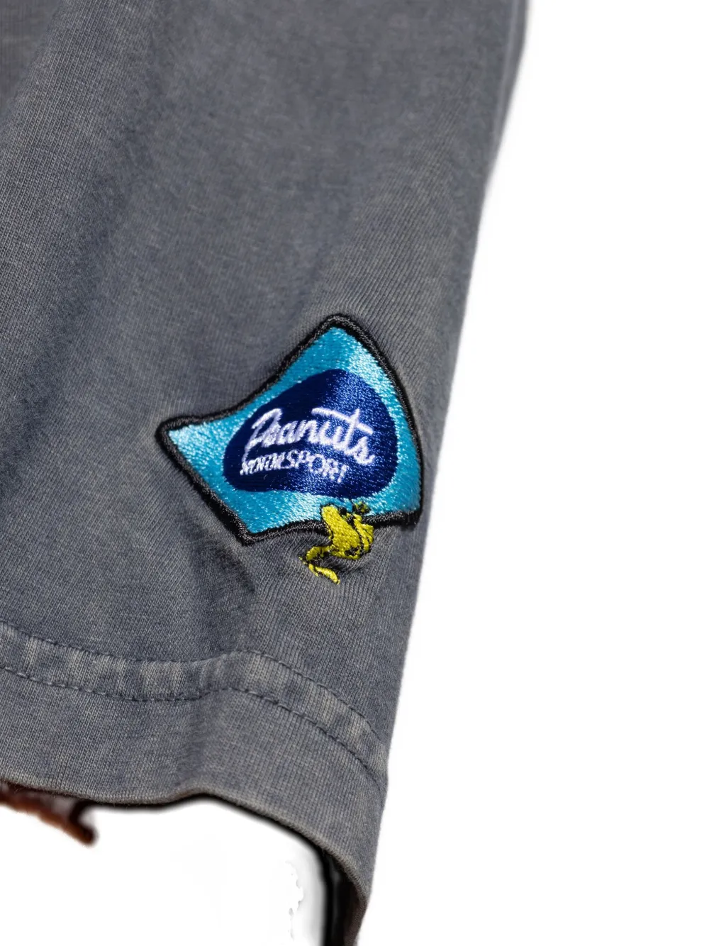 Серый с графическим принтом и нашивкой на рукаве, круглый вырез, короткие рукава