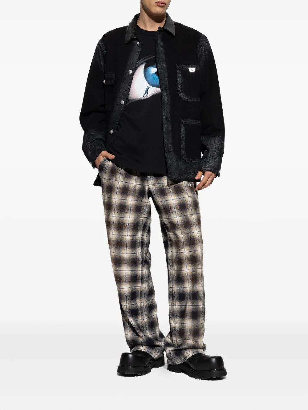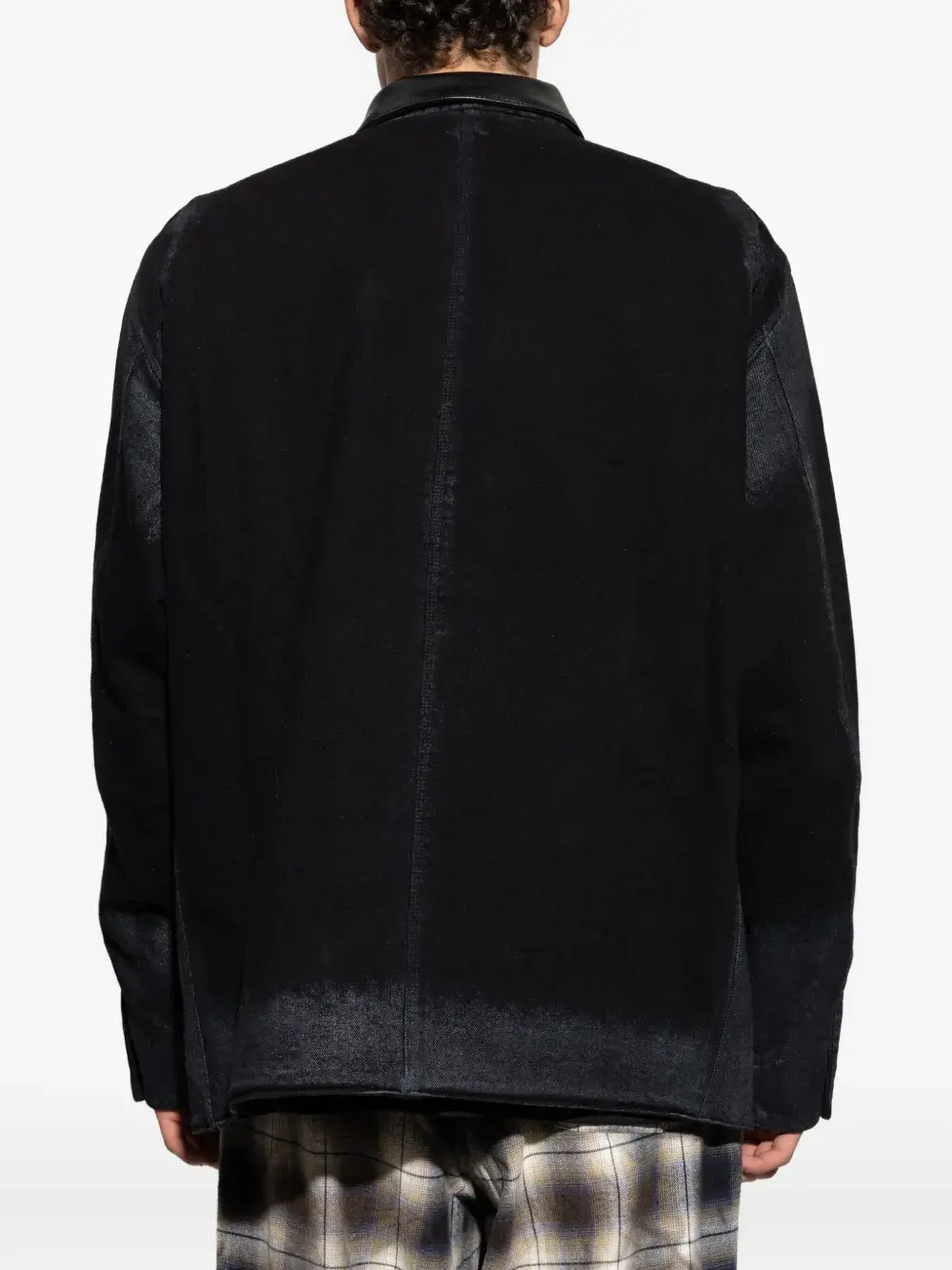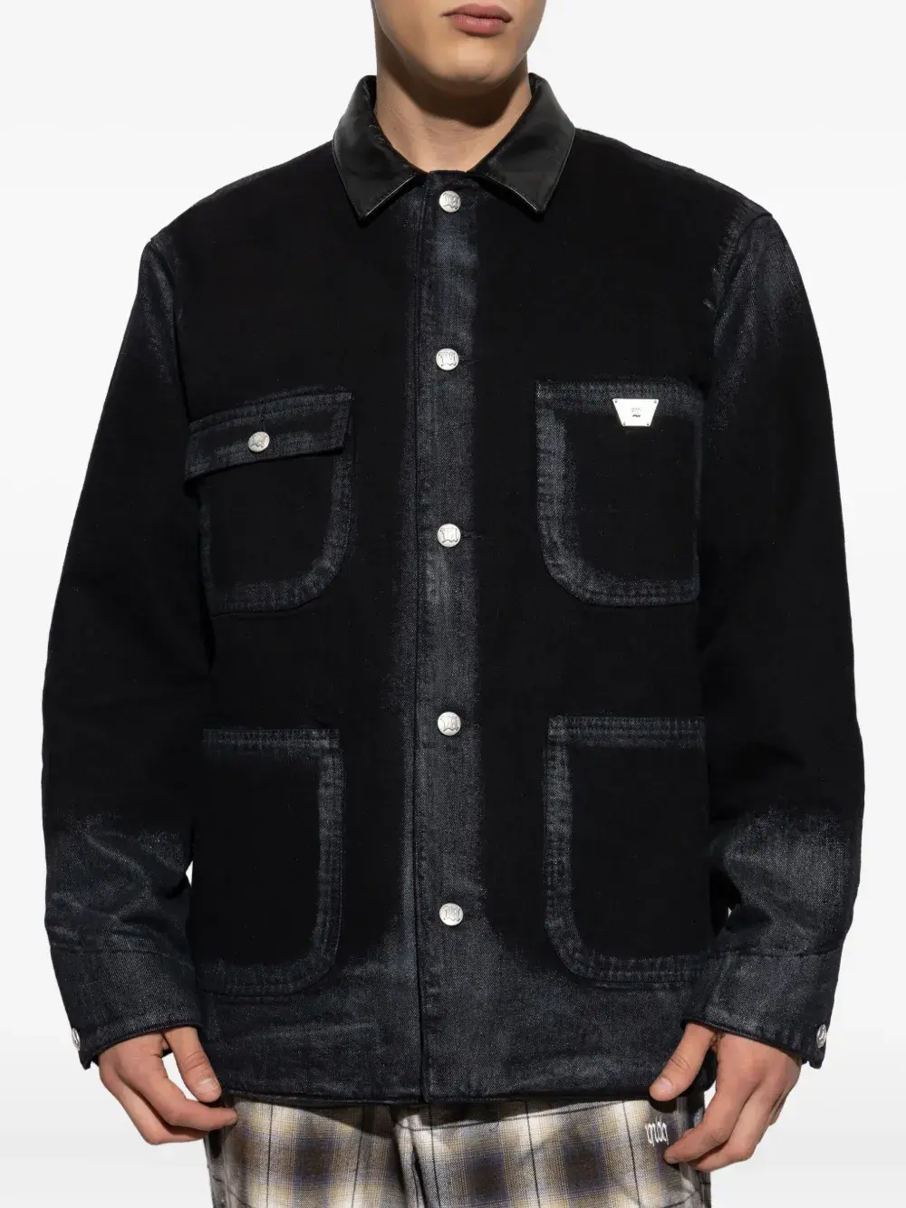 Стиранный черный, застежка на пуговицах, передние карманы, декоративная табличка