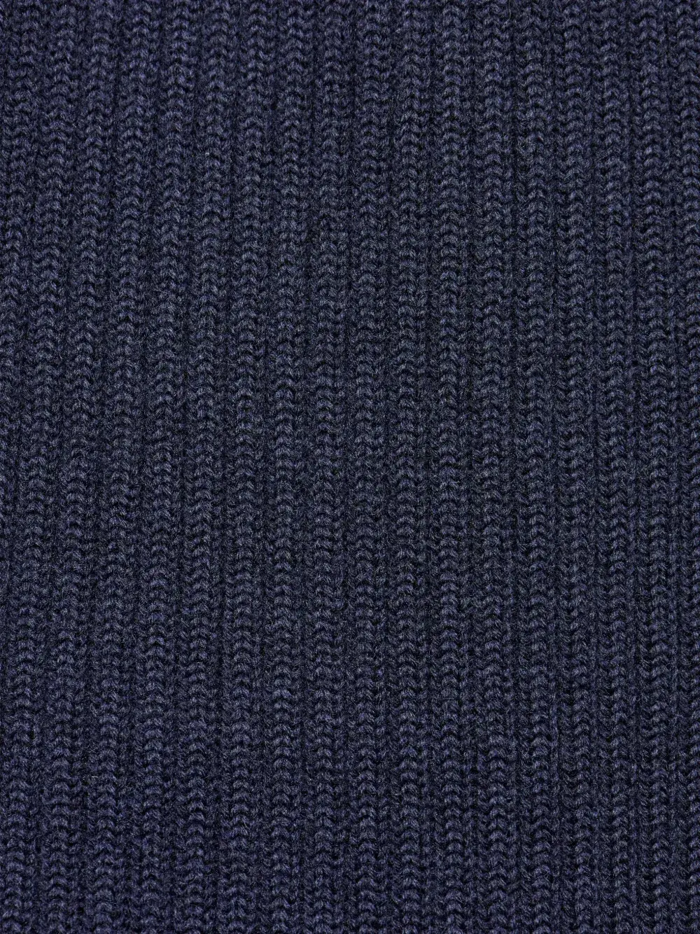 Темно-синий в рубчик, с круглым вырезом, длинными рукавами, с нашивкой-логотипом