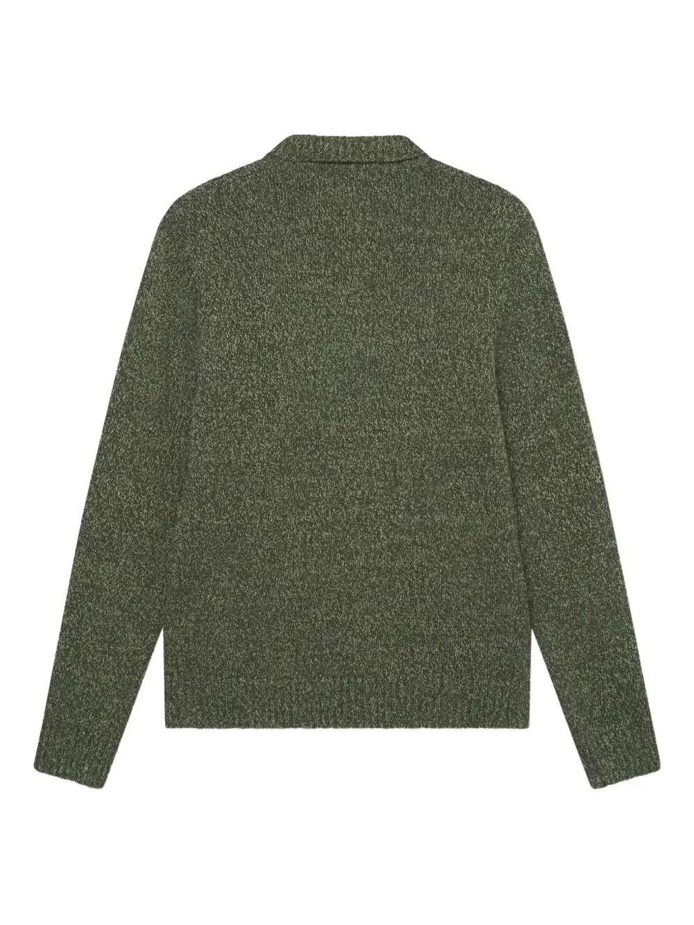 Зеленый трикотажный материал, застежка на пуговицы, длинные рукава, воротник поло