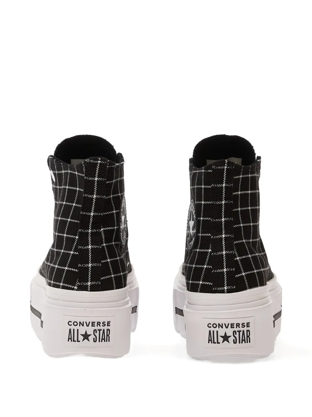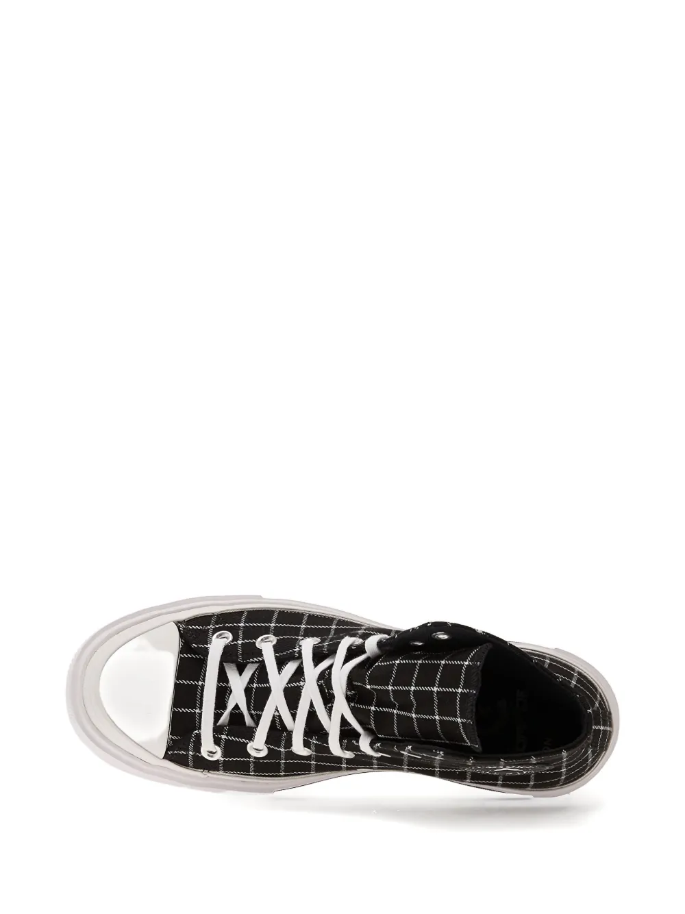Черно-белая клетка, платформа, резиновая подошва, шнуровка, круглый носок, канвас