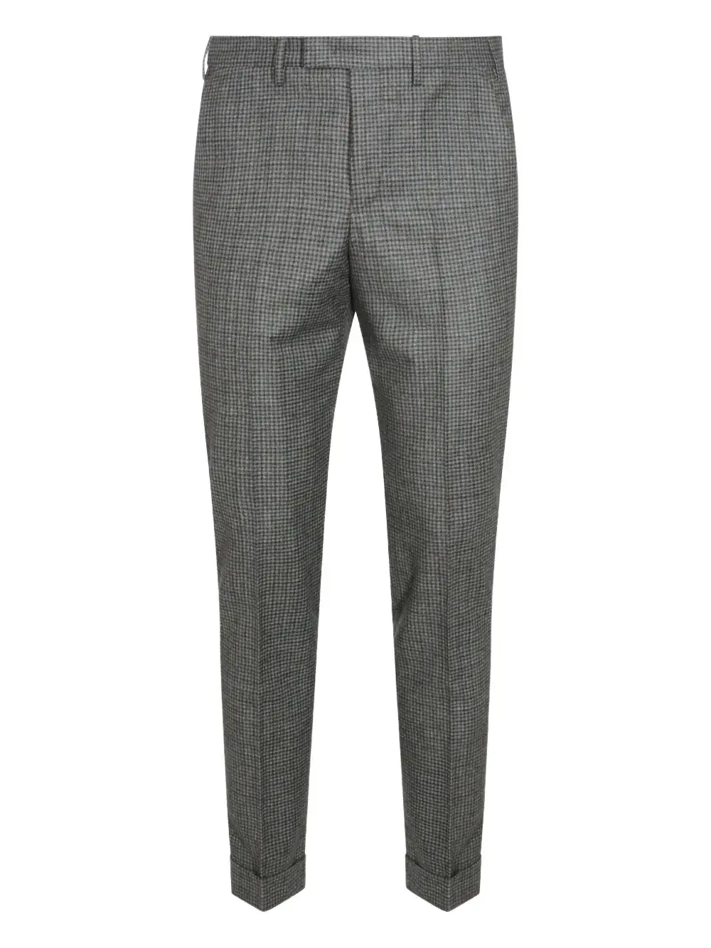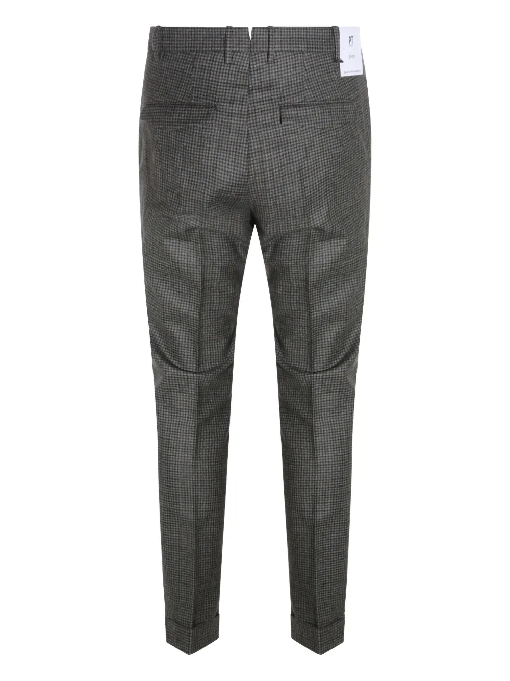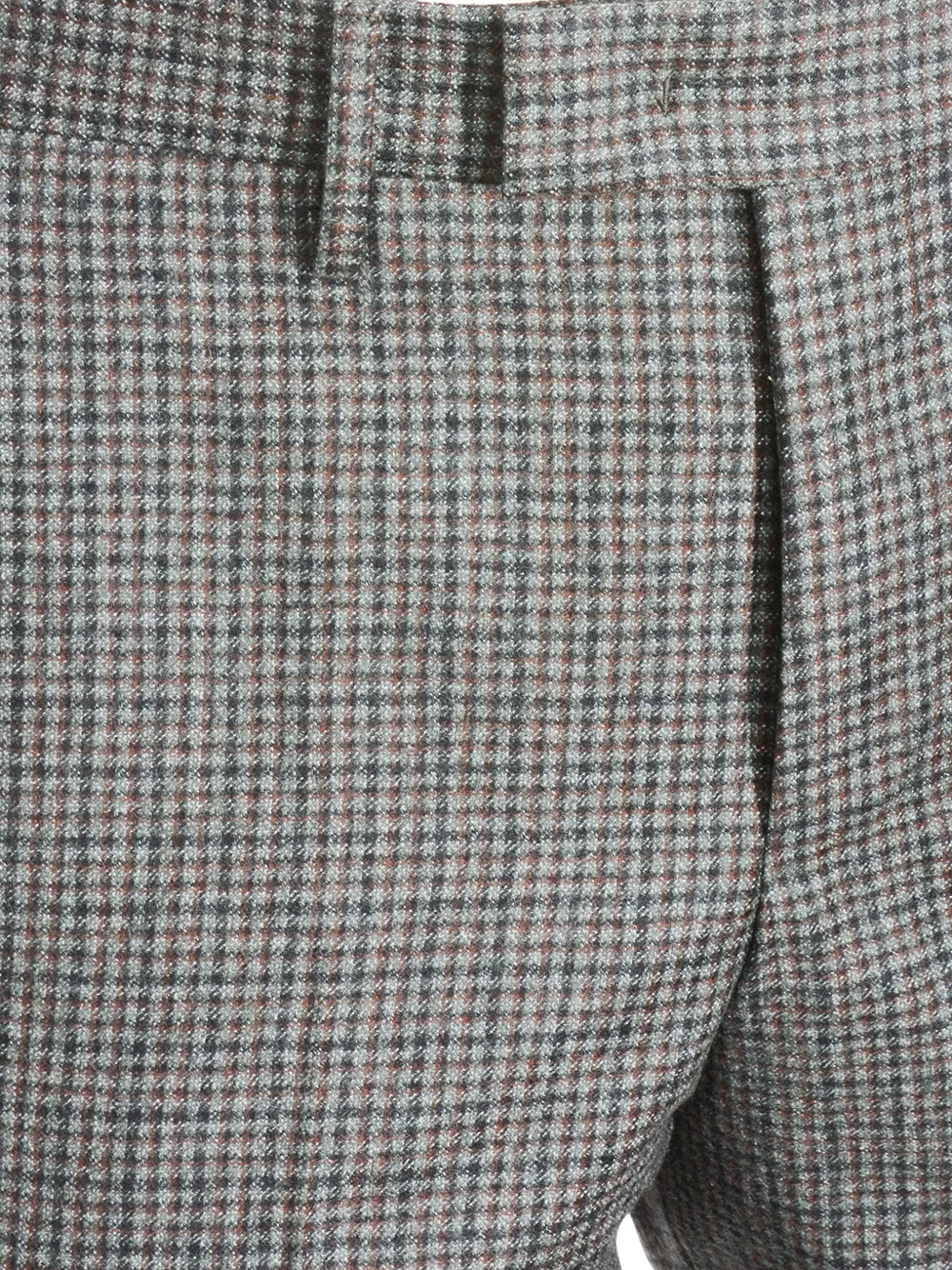 Серый ремень с клетчатым узором, шлевки, подрубленный низ, задний прорезной карман