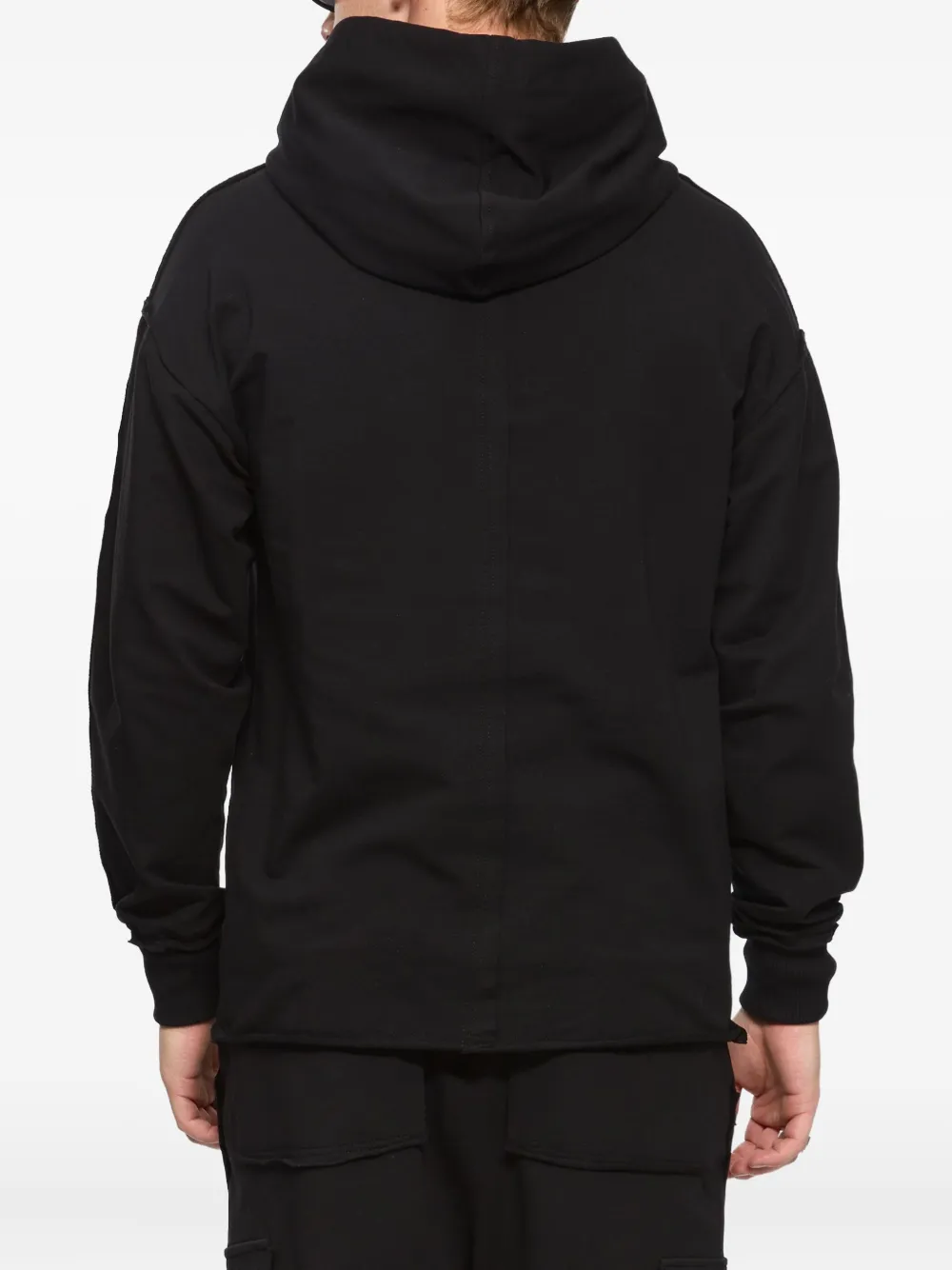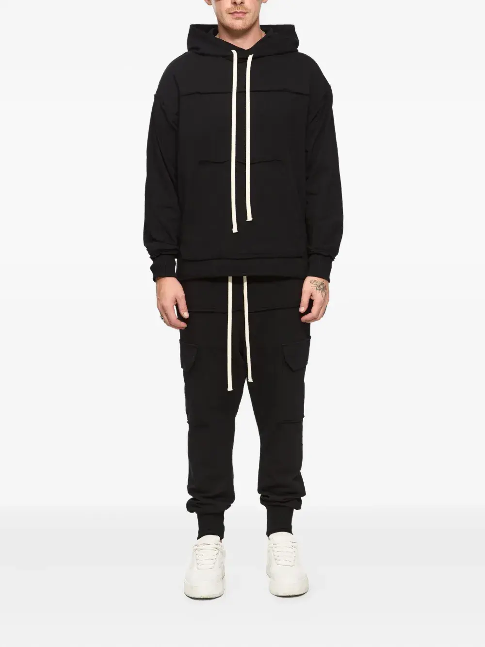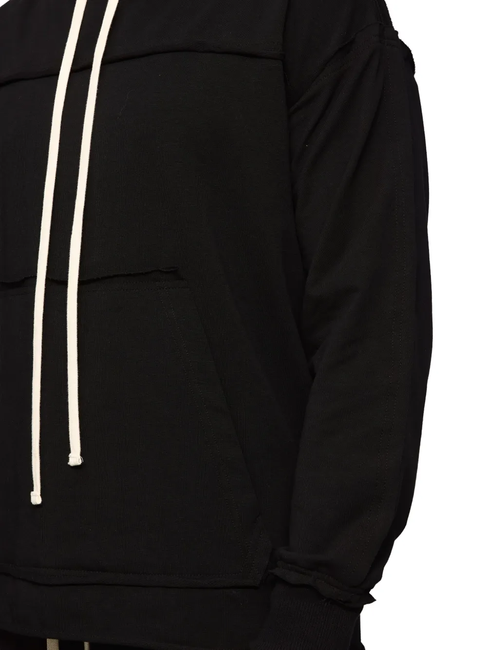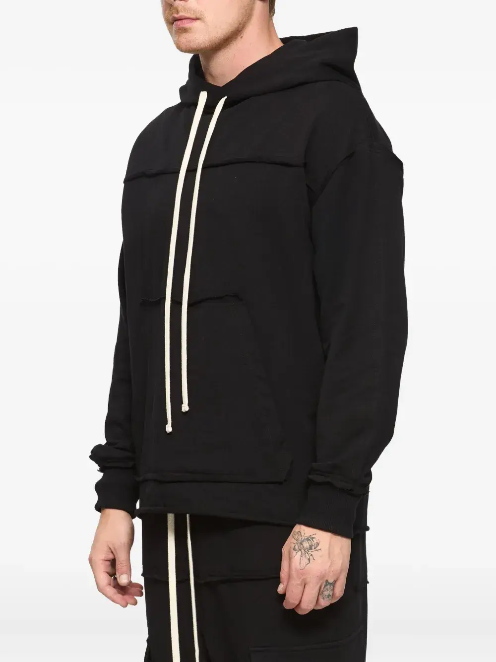 Черная худи с кулиской, передним карманом-кенгуру, вставками и ребристыми манжетами
