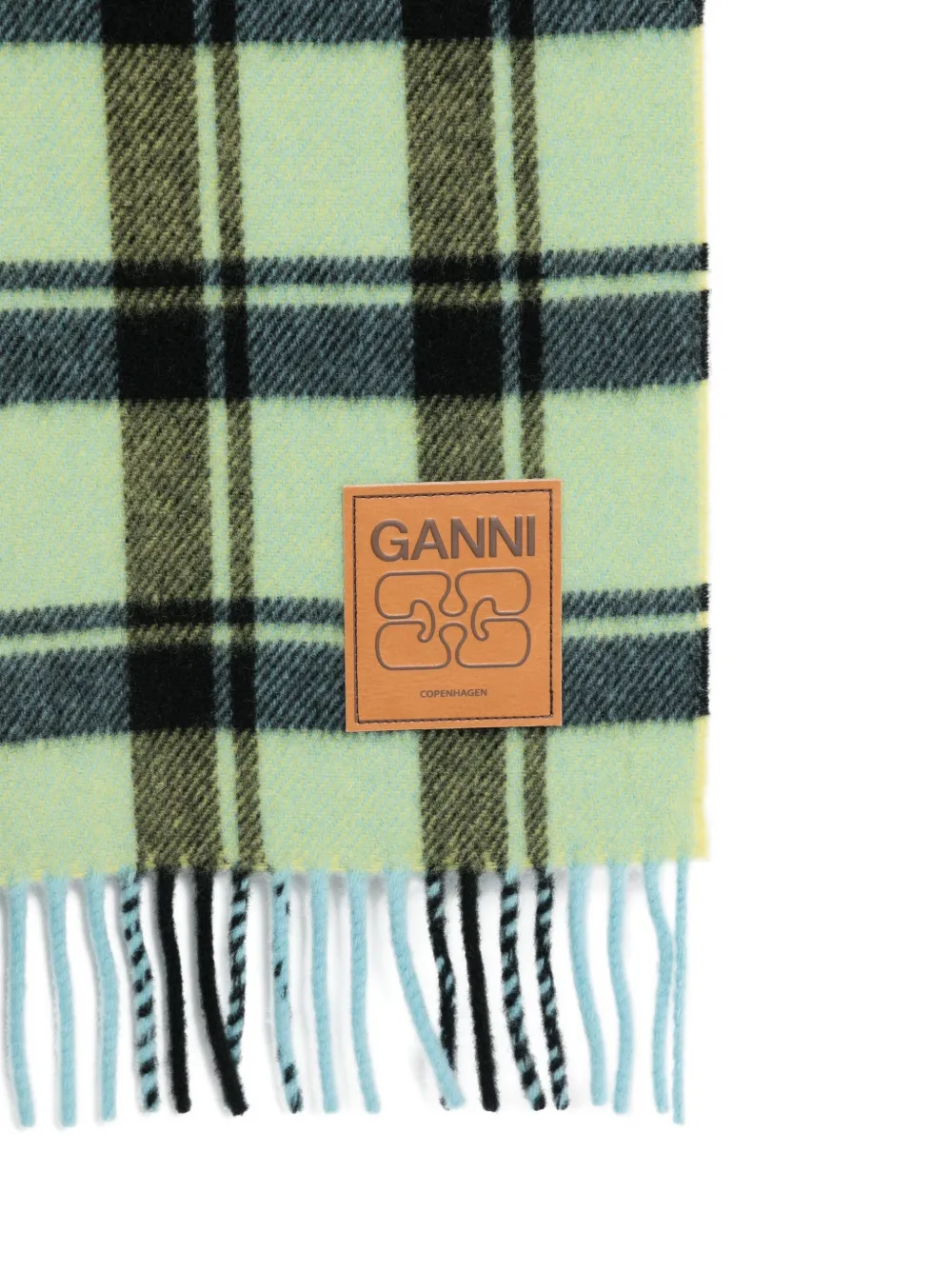 Шарф в клетку с бахромой Ganni, зеленый 12 163₽