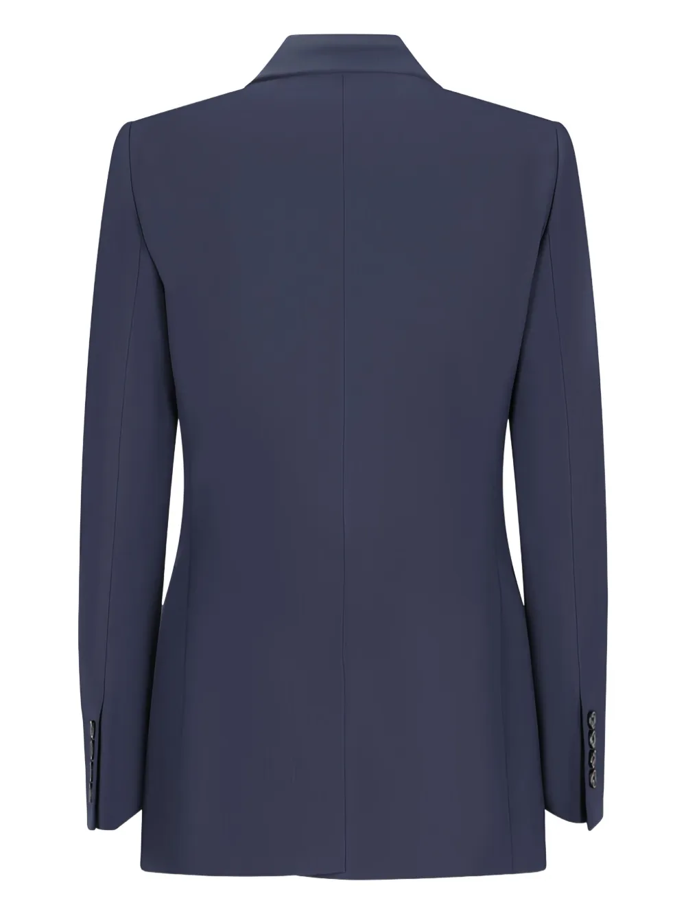 Синий двубортный пиджак с застежкой на пуговицы, лацканы с вырезом, клапанные карманы