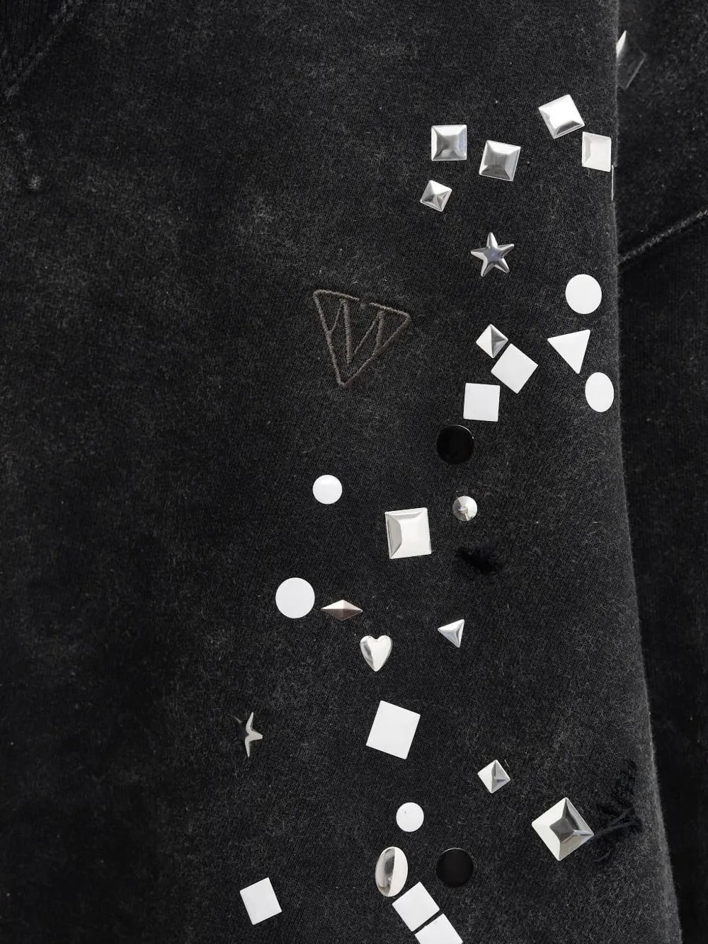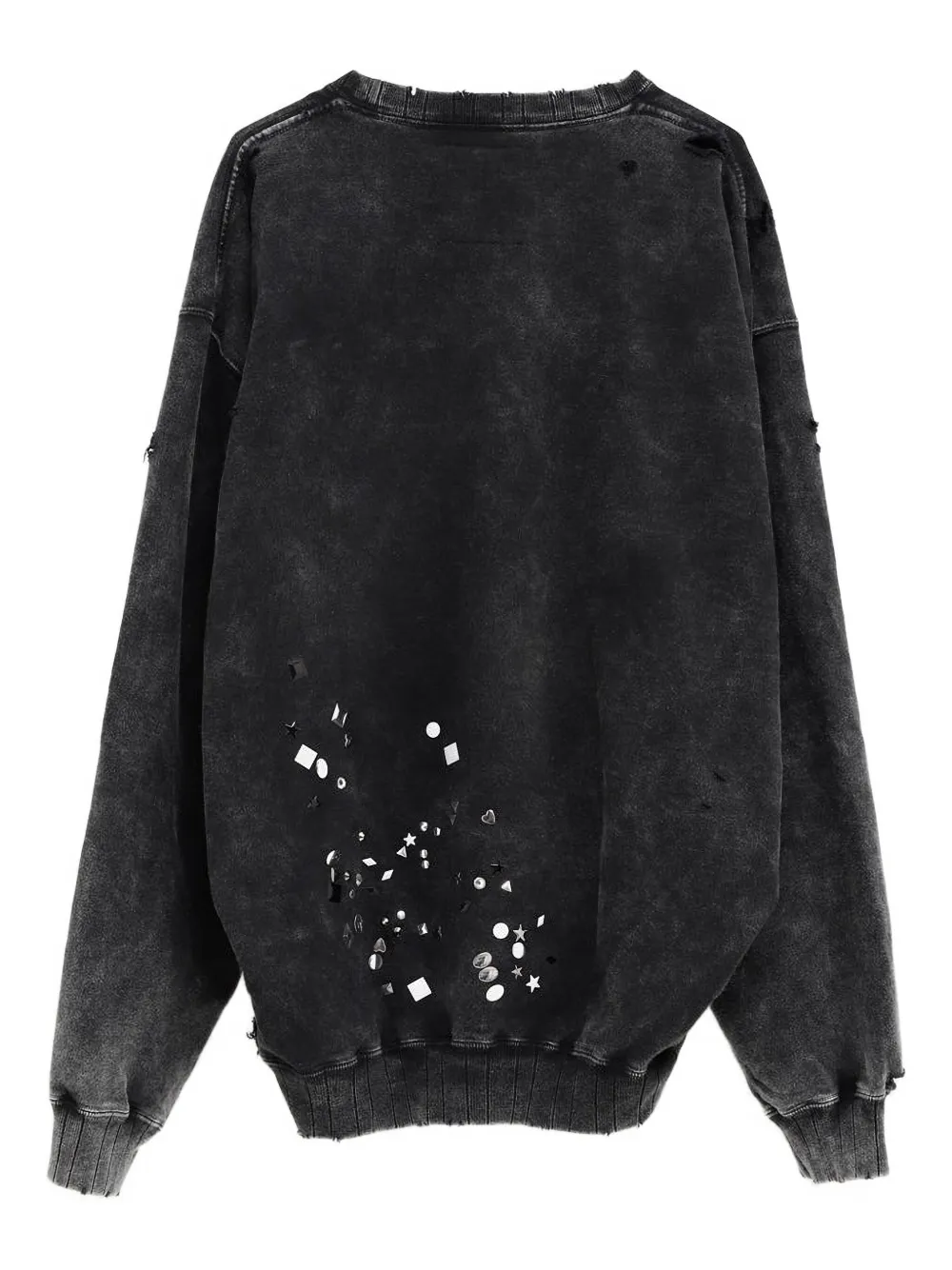 Черные украшения, эффект потертости, ребристый подол, ребристые манжеты, круглый вырез