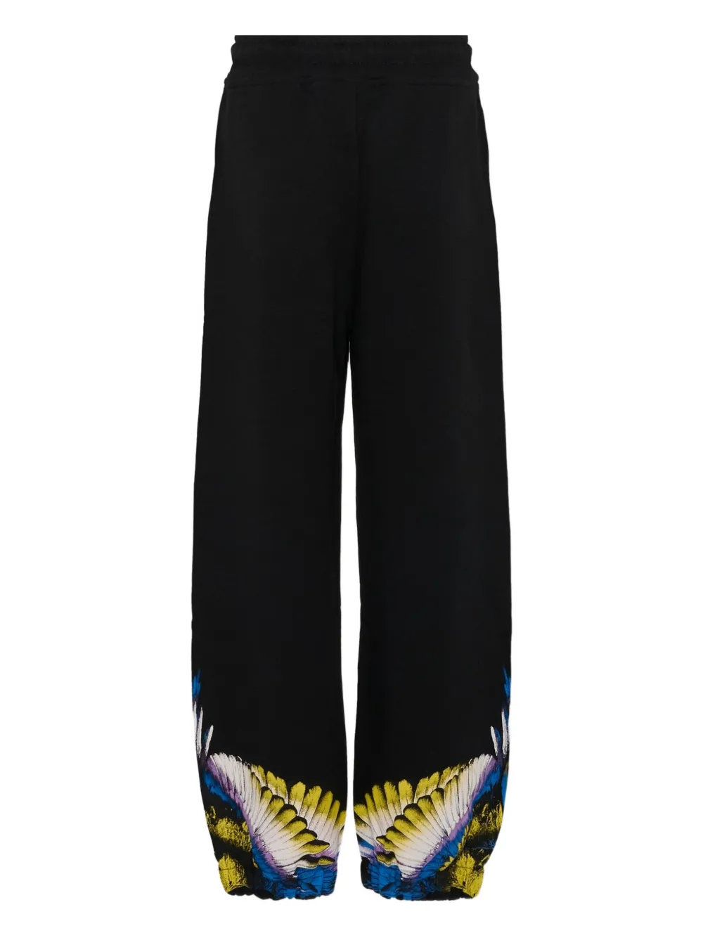 Черный графический принт по низу, застежка на шнурке, эластичный пояс, боковые карманы