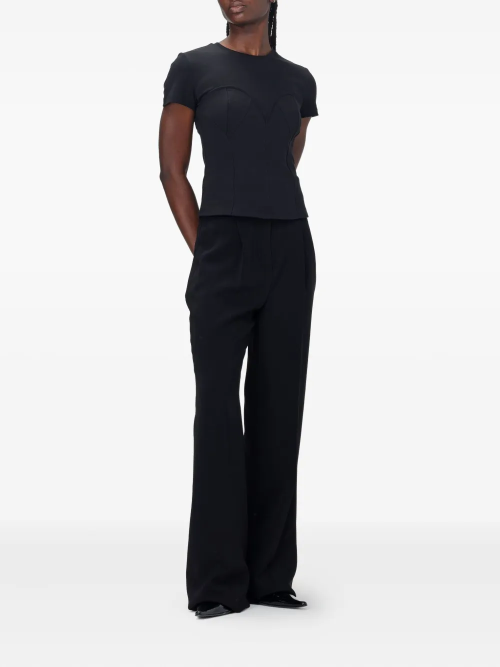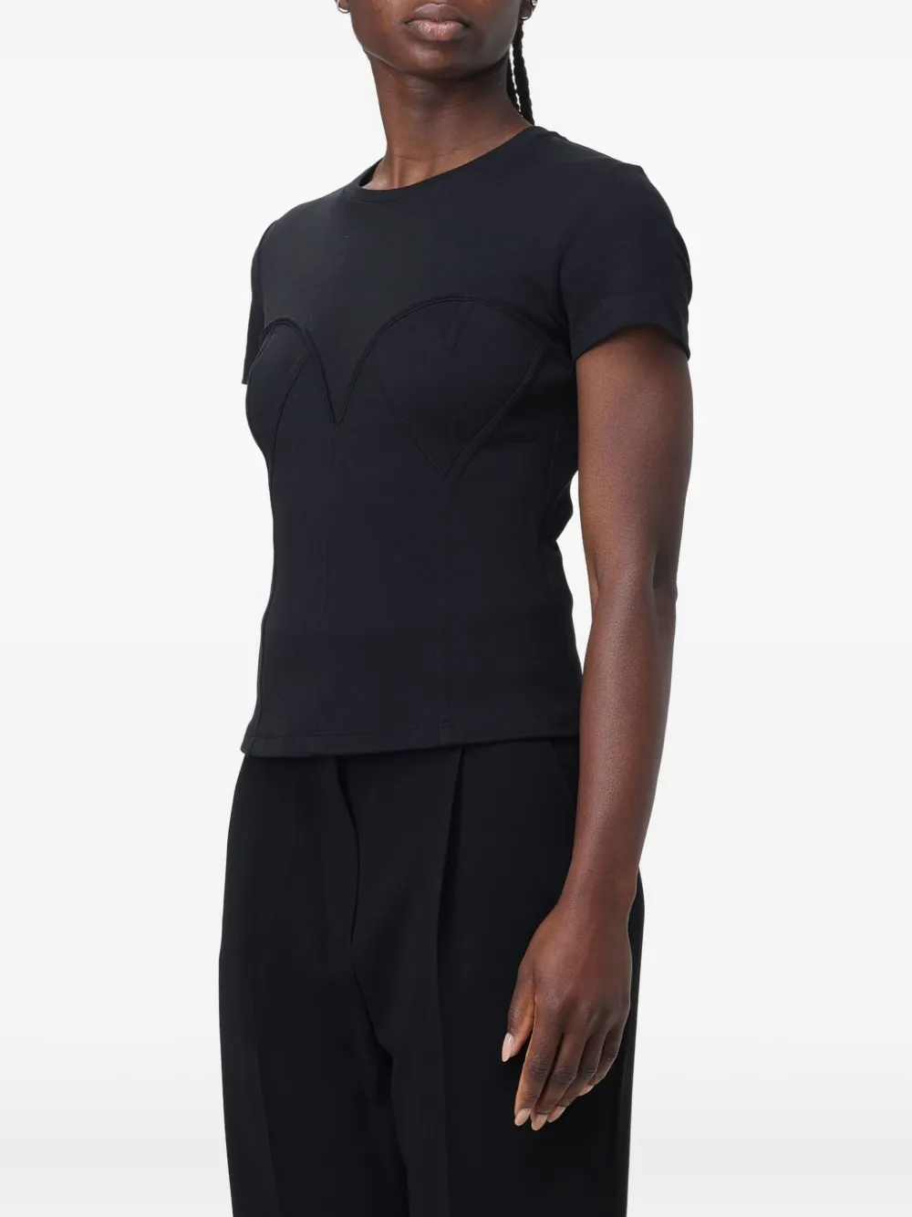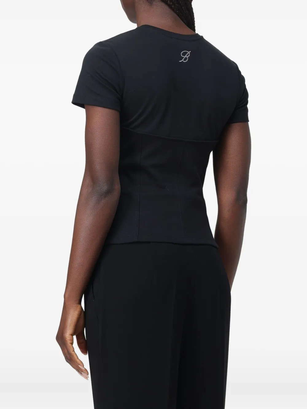 Черный блузон-бюстье, короткие рукава, круглый вырез, однотонная строчка, логотип сзади