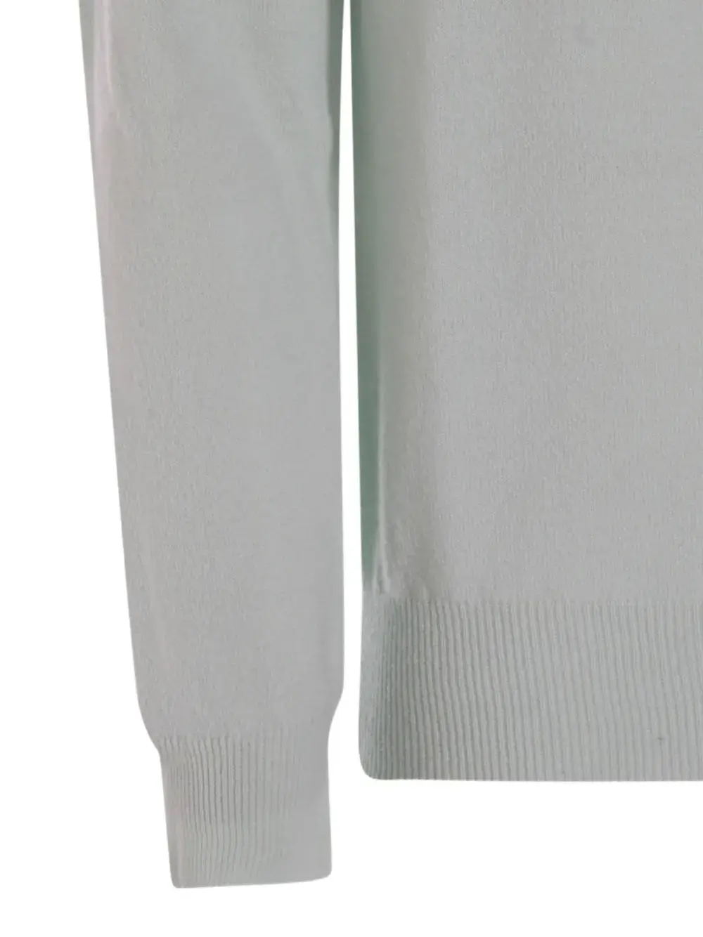 Светло-голубой свитер с круглым вырезом, длинными рукавами, ребристыми манжетами и поясом