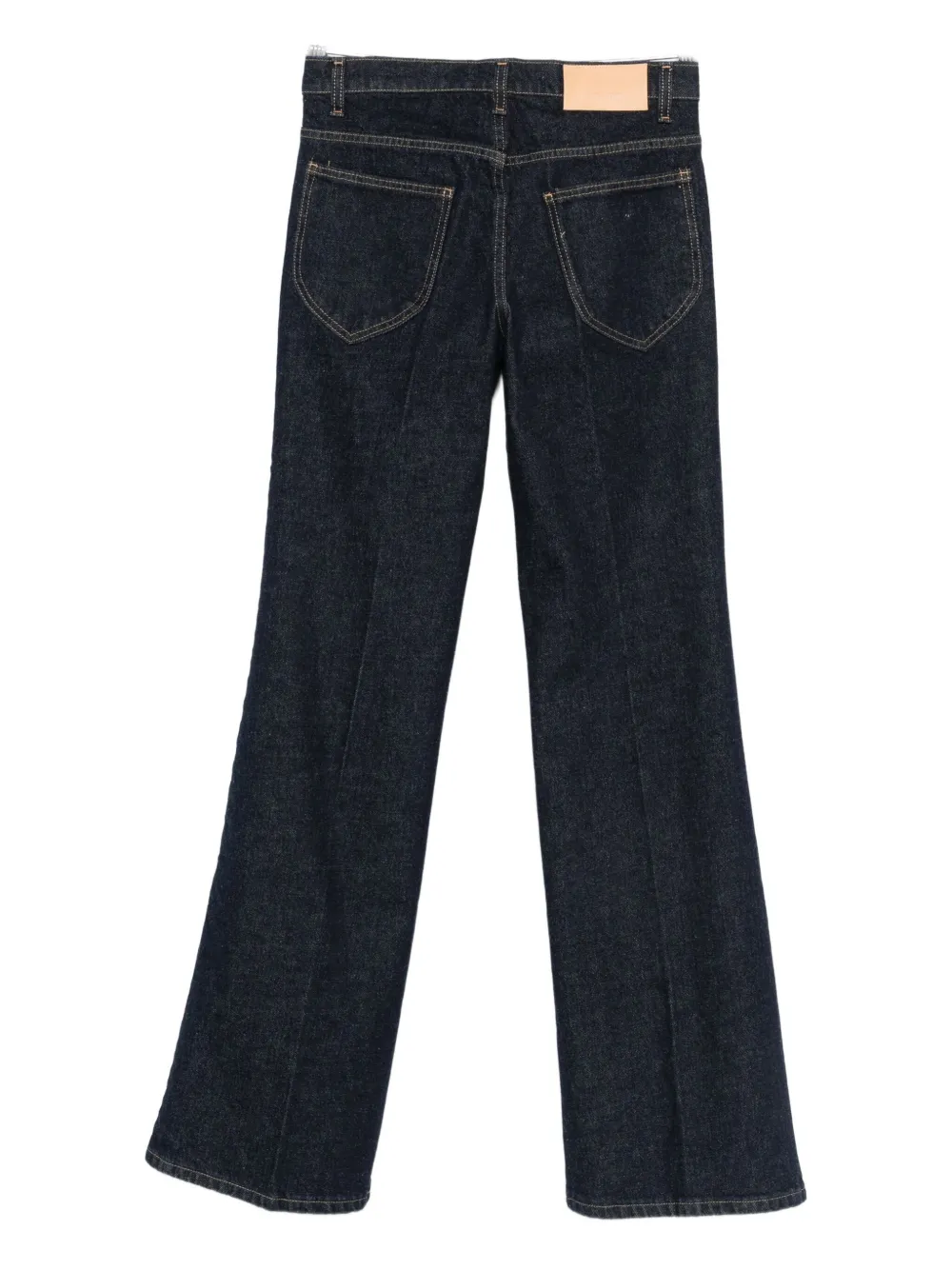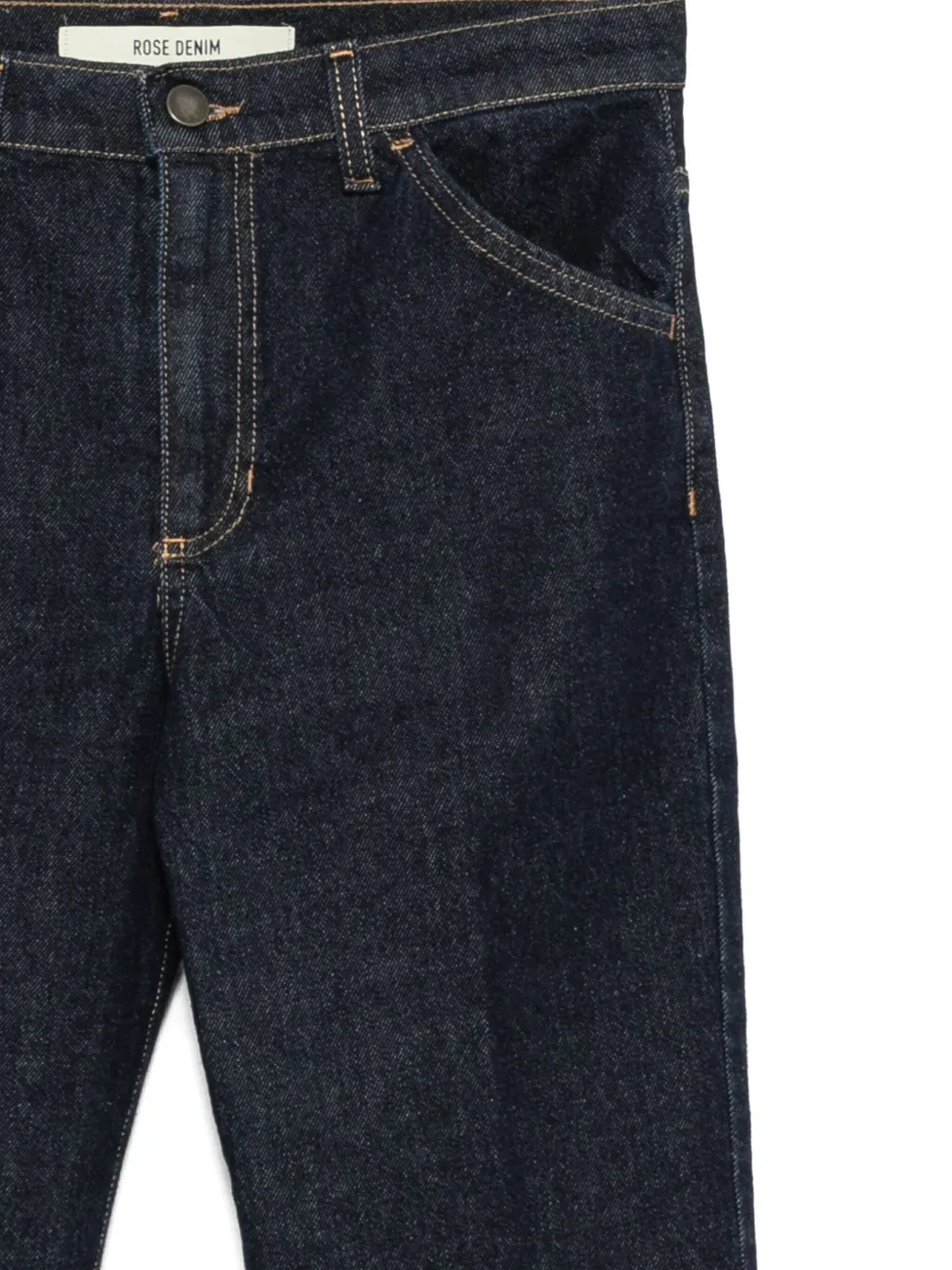 Темно-синие хлопковые брюки с швами, пятью карманами, шлевками для ремня и задней нашивкой