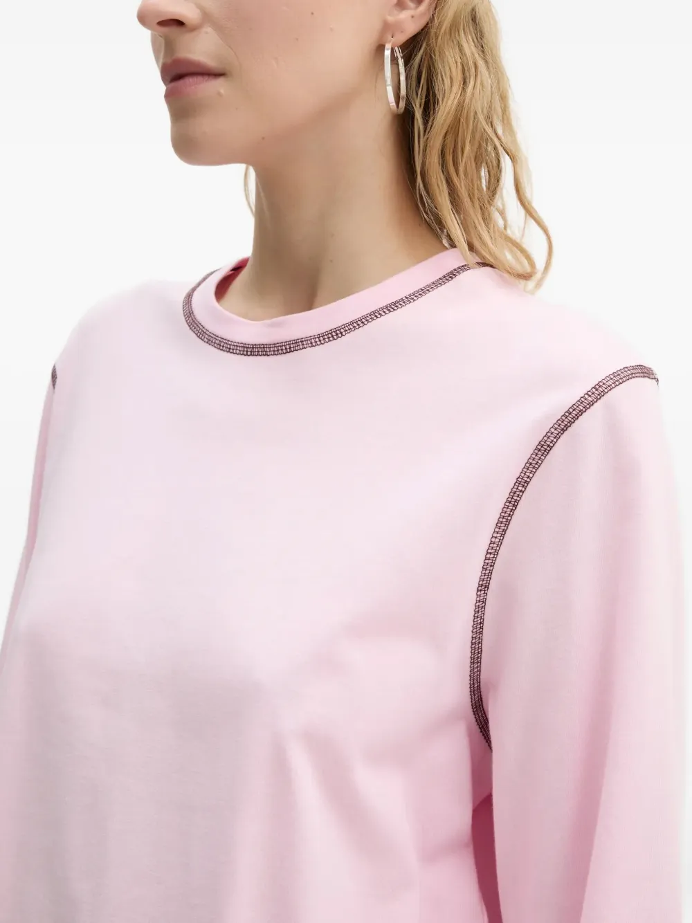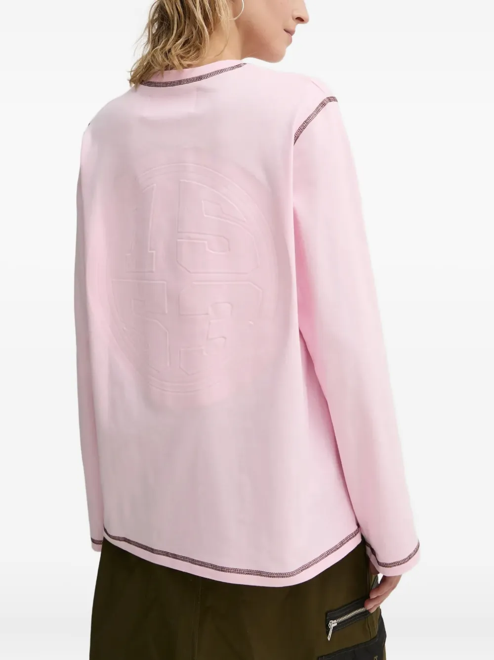 Розовый джемпер с тисненым рисунком, отделкой строчкой, длинными рукавами и круглым вырезом