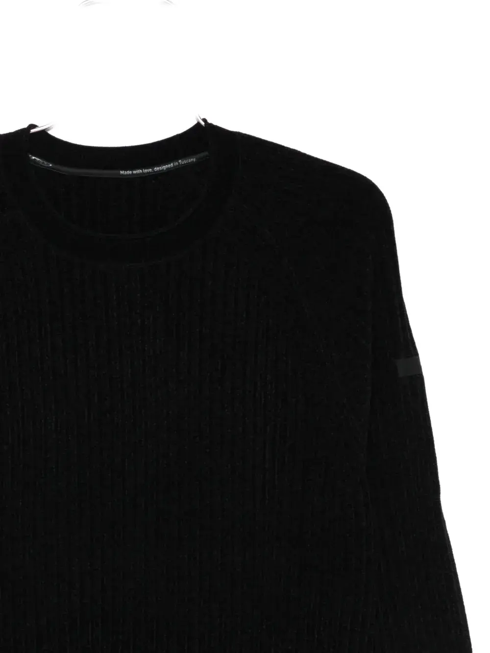 Черный вязаный джемпер в рубчик с круглым воротом, длинными рукавами и нашивкой с логотипом