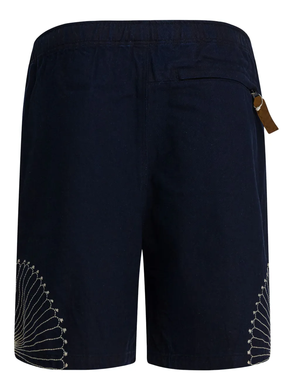 Синий пояс с вышивкой, эластичный пояс на талии, задний карман на молнии, боковые карманы в швах