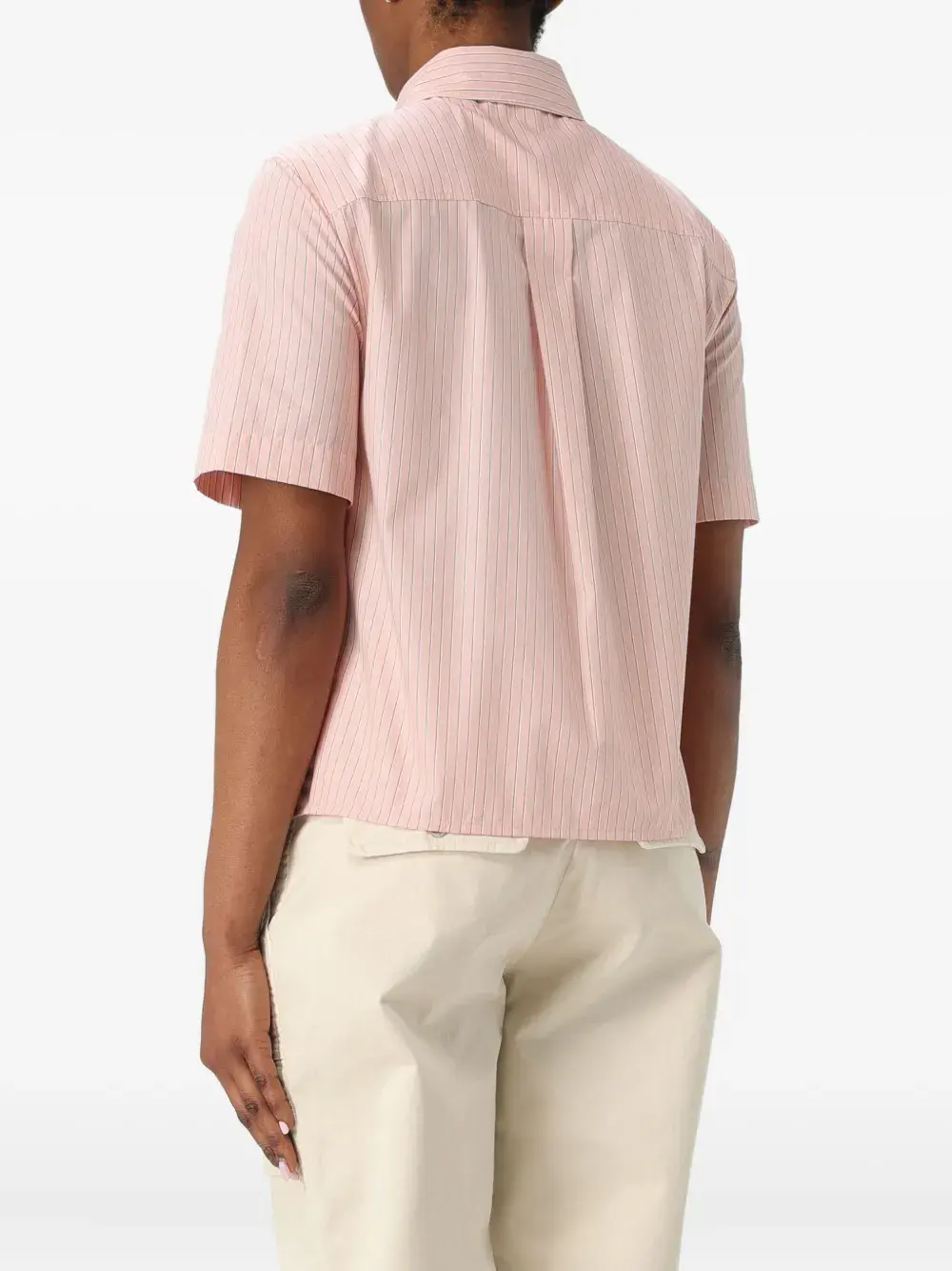 Светло-розовая рубашка в полоску с застежкой на пуговицы, короткими рукавами и вышитым логотипом