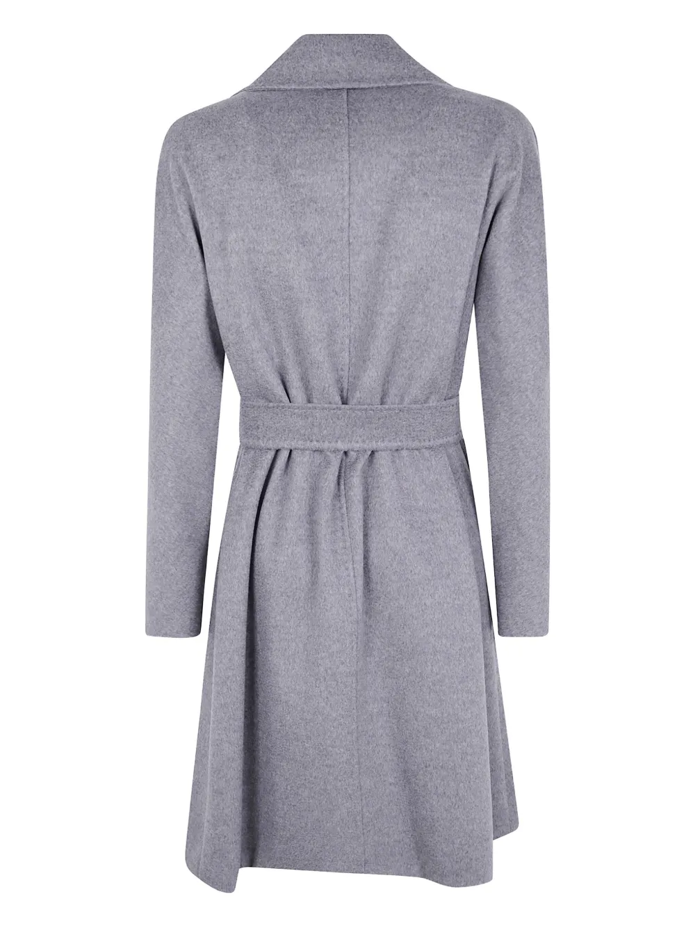 Средне-серый шерстяной пиджак с застежкой на завязках, длинными рукавами и воротником с лацканами