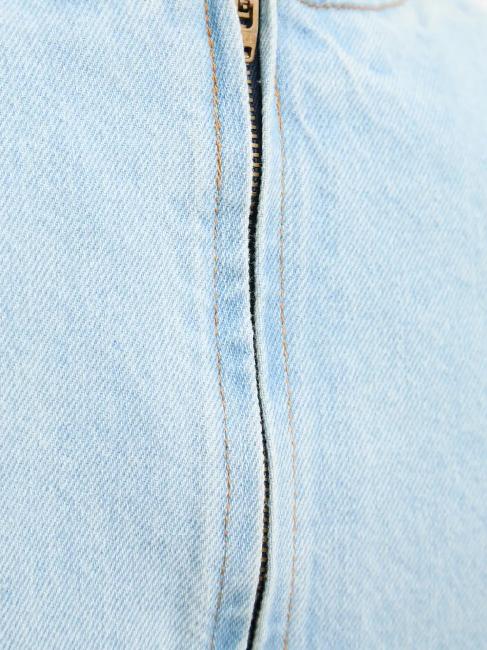 Светло-голубой без рукавов, круглый вырез, застежка-молния, тональная строчка, многоярусный дизайн