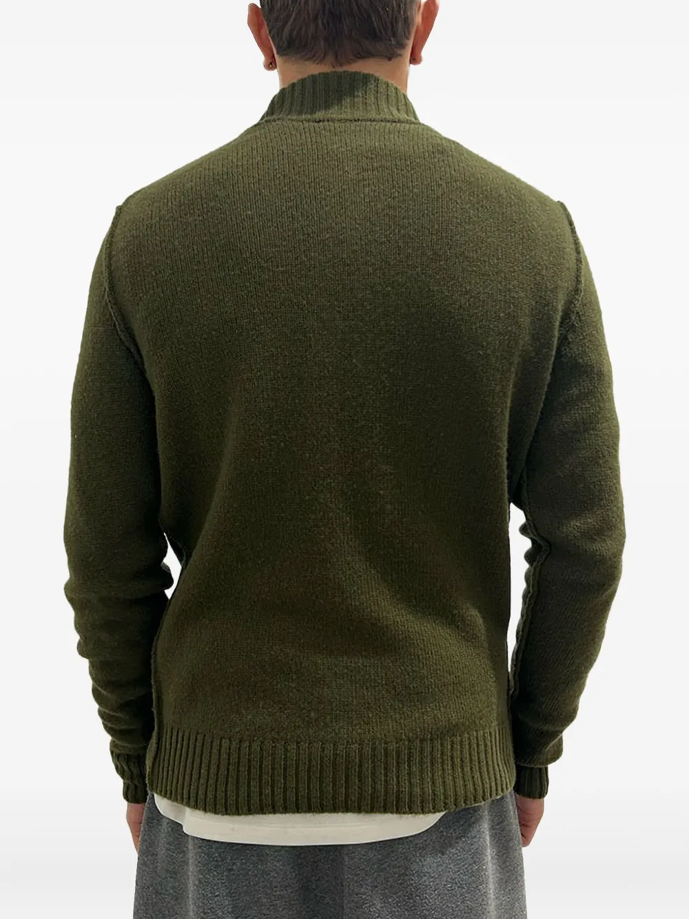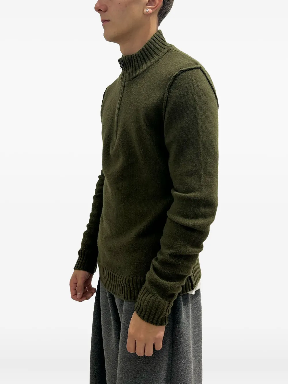 Оливково-зеленый шерстяной джемпер с застежкой-молнией на воротнике, в рубчик, с длинными рукавами