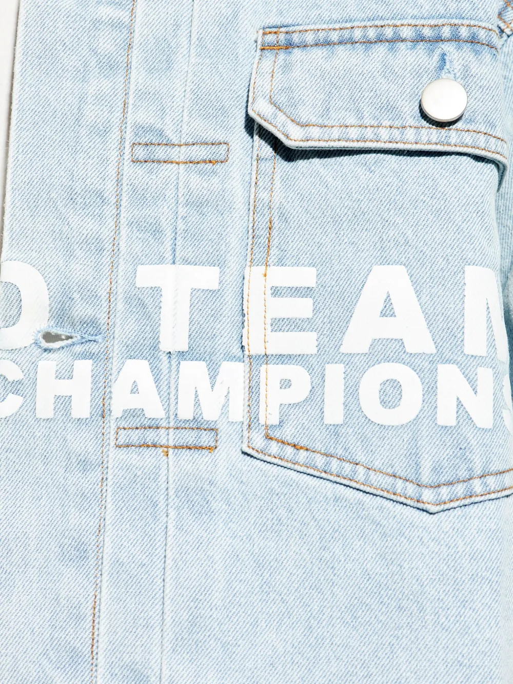 Светло-голубой, украшения, нагрудные карманы, застежка на пуговицы, длинные рукава, вышитые детали
