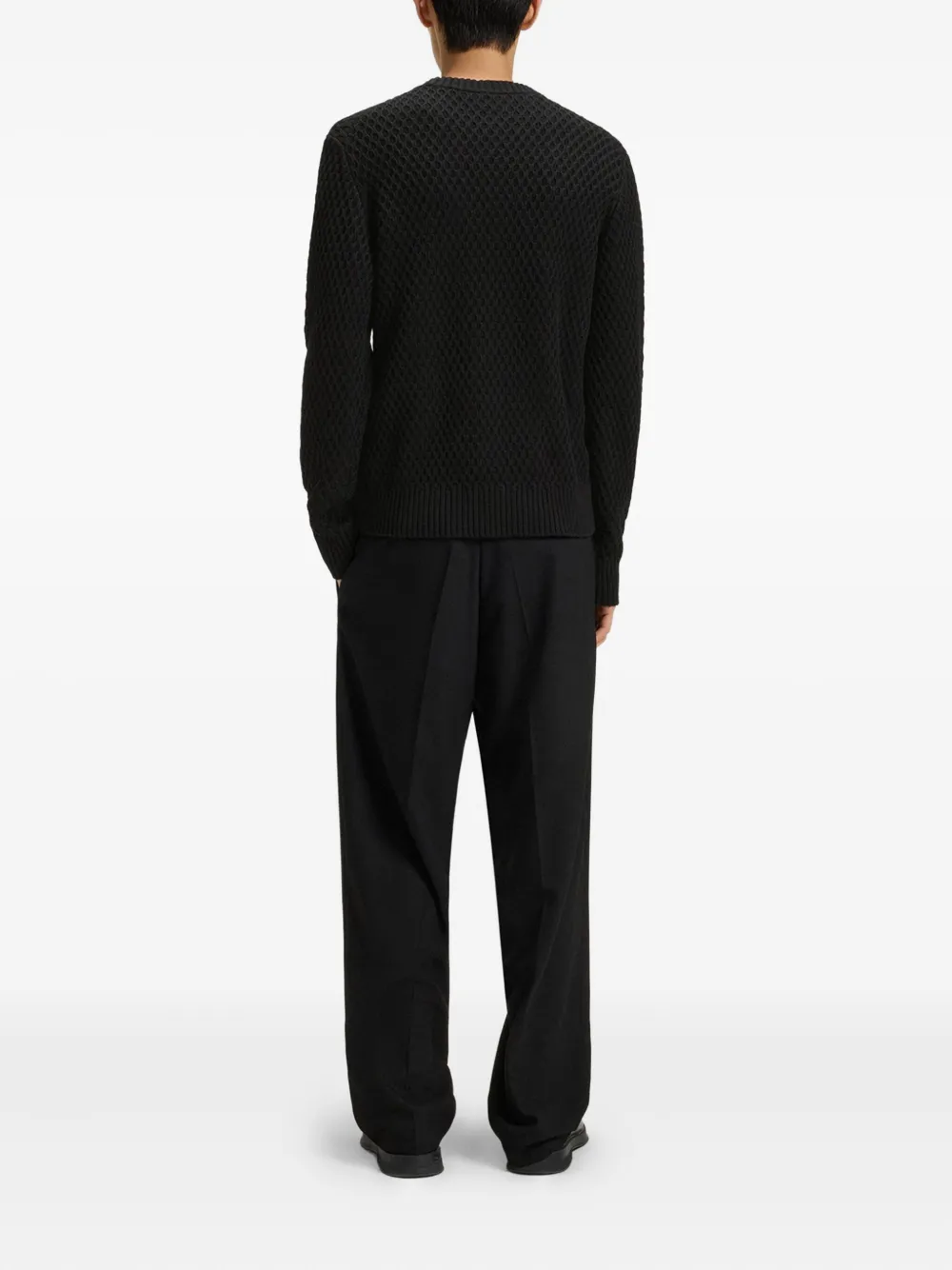 Черный фактурный вязаный джемпер с круглым вырезом, длинными рукавами, ребристыми низом и манжетами