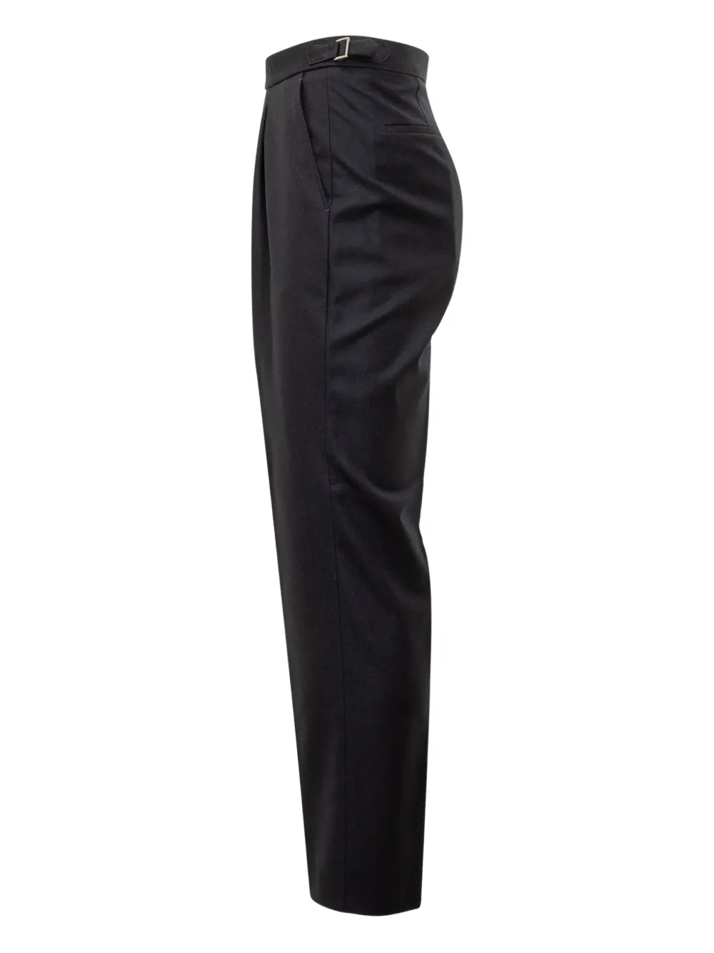 Темно-синий, плиссированные детали, шлевки для ремня, застежка на пуговицу, задние прорезные карманы