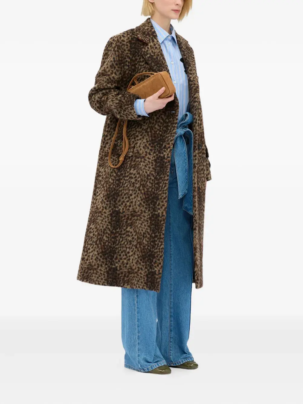 Светло-голубая укороченная рубашка в полоску с аппликацией, застежкой на пуговицы и длинными рукавами