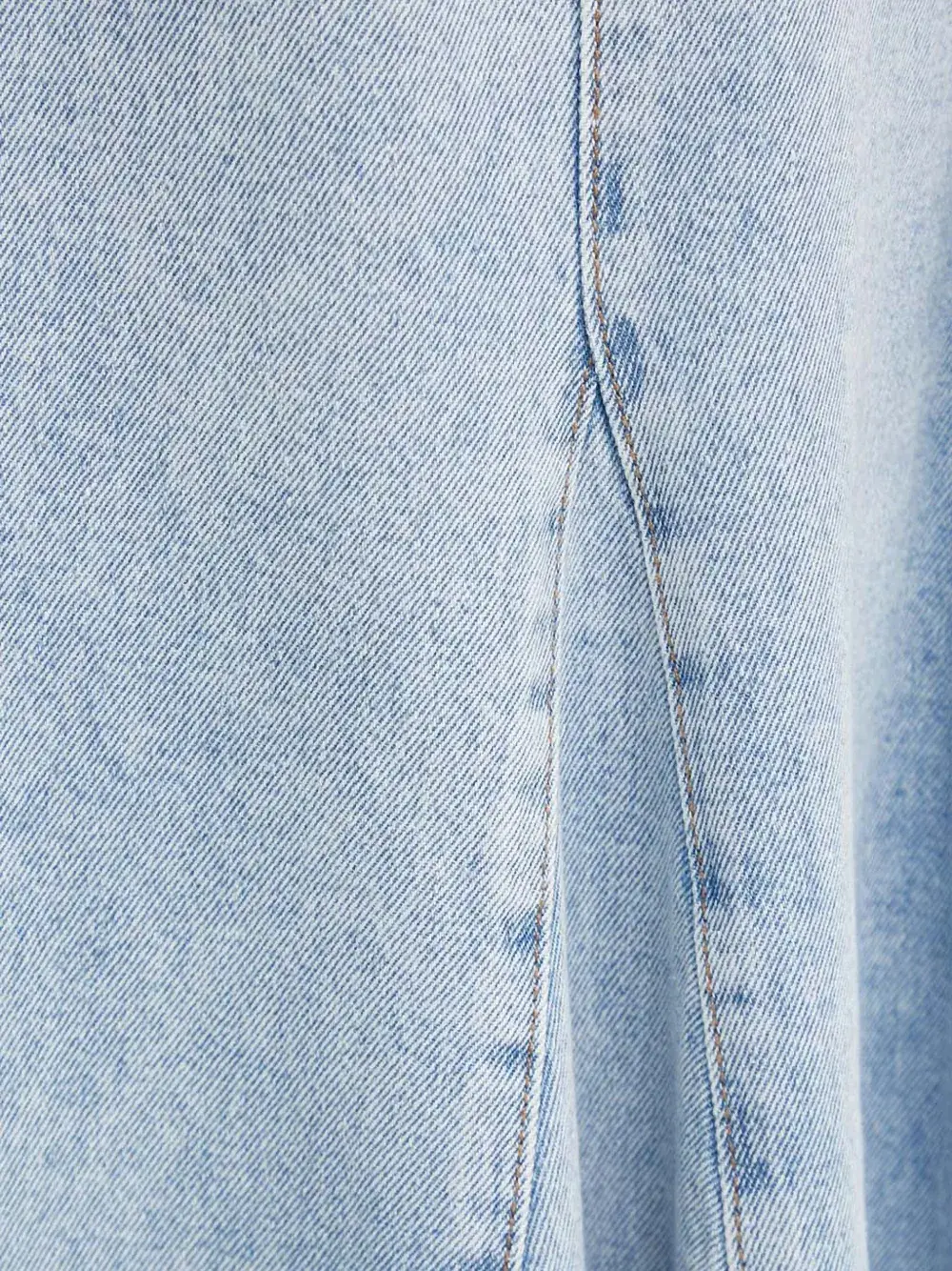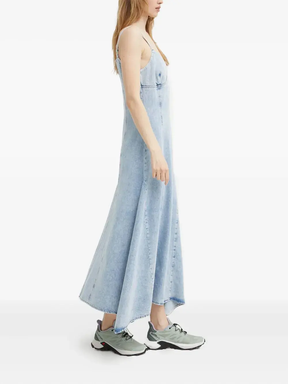 Светло-голубой цвет, панельный дизайн, V-образный вырез, тонкие бретели, юбка А-силуэта, отделка в тон