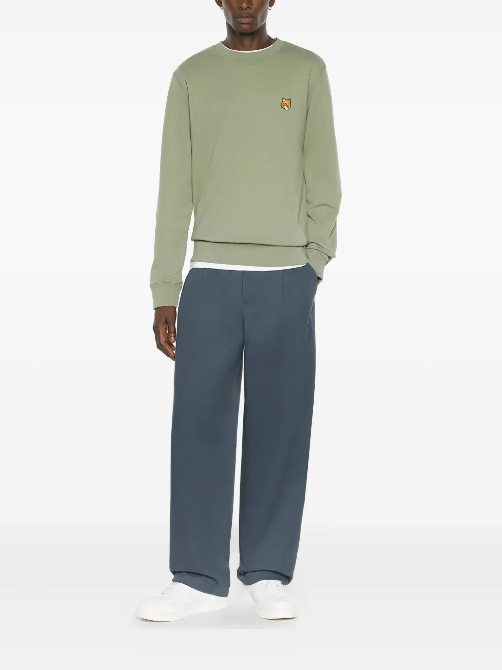 Лауэл грин, круглый вырез, длинные рукава, ребристый низ, ребристые манжеты, нашивка в виде головы лисы