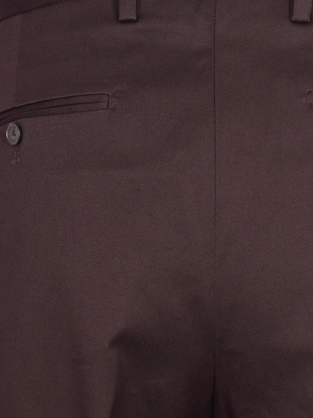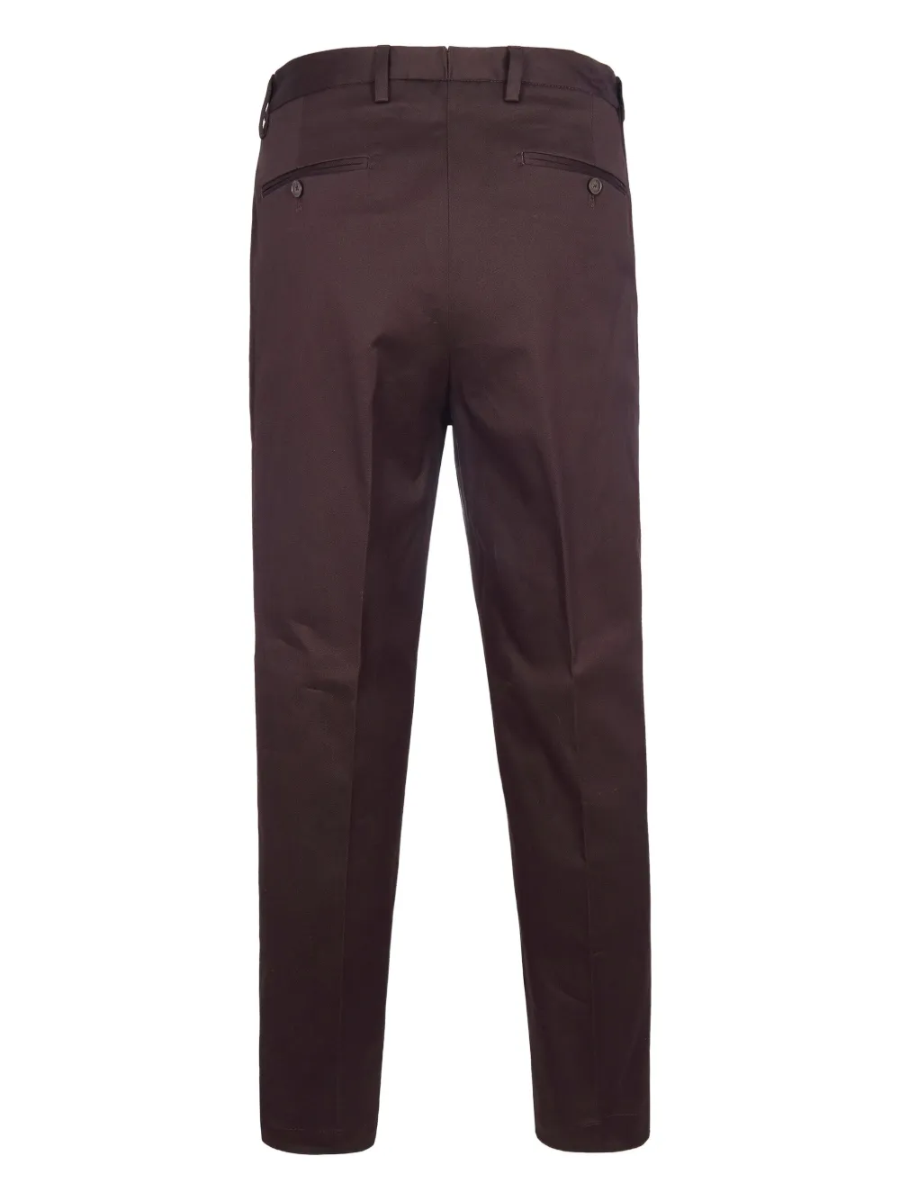 Коричневые плиссированные брюки с шлевками для ремня, застежкой на пуговицу и задним прорезным карманом