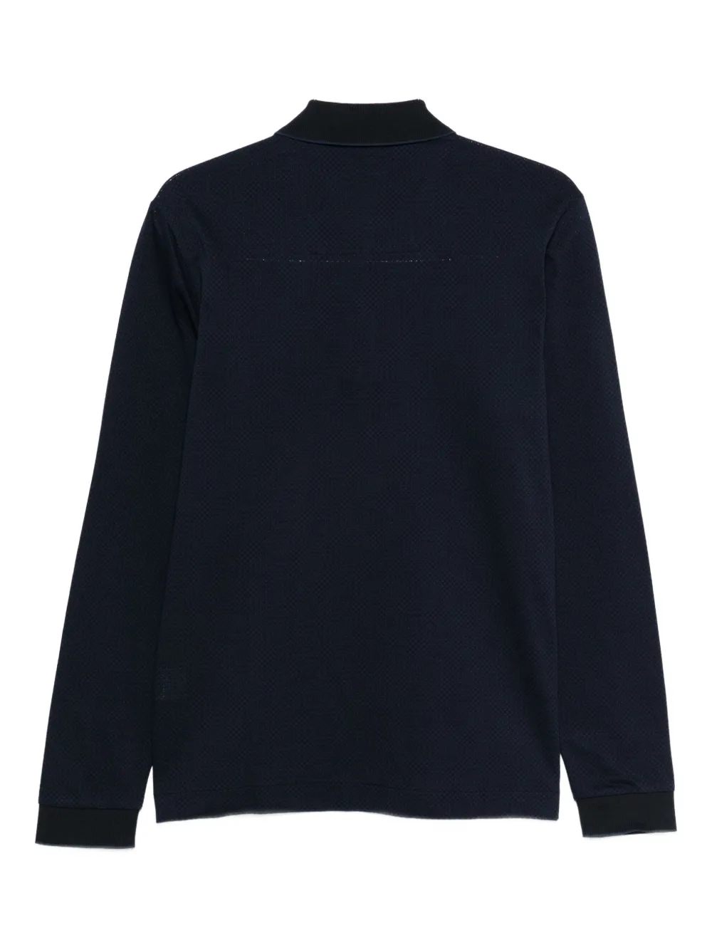 Синее поло с длинными рукавами, молнией на воротнике, стандартным кроем, боковыми разрезами, двухцветное
