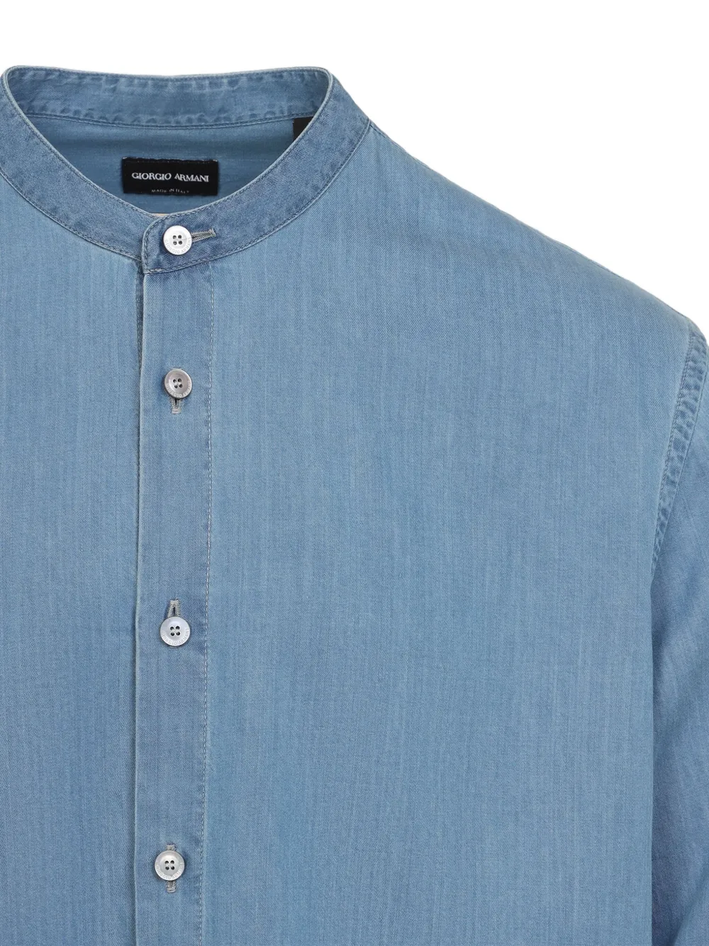 Рубашка без воротника на пуговицах Giorgio Armani, синий
