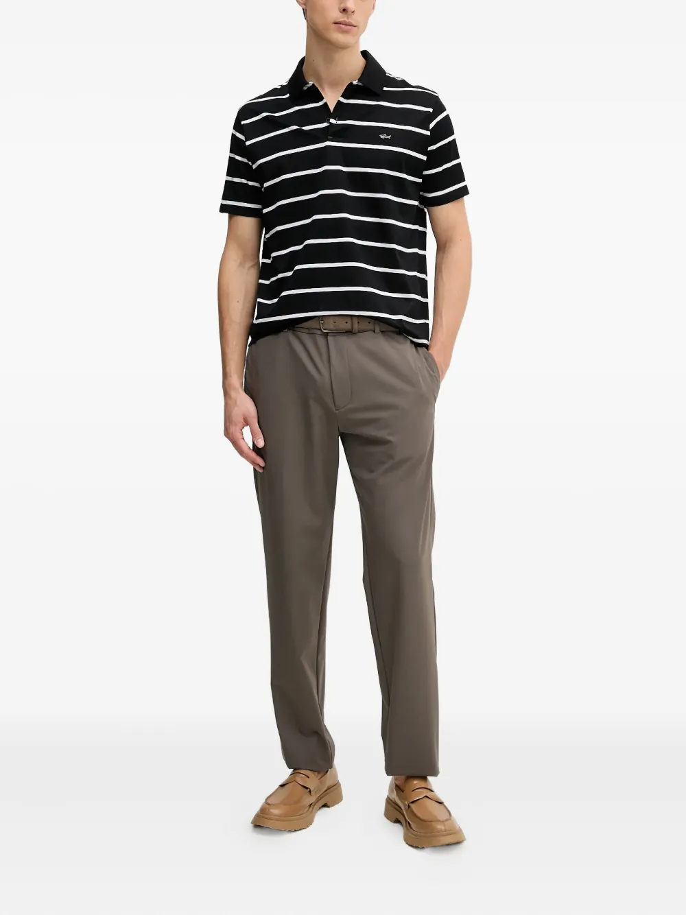 Черная полосатая рубашка-поло с логотипом, отложным воротником, короткими рукавами и застежкой на пуговицы