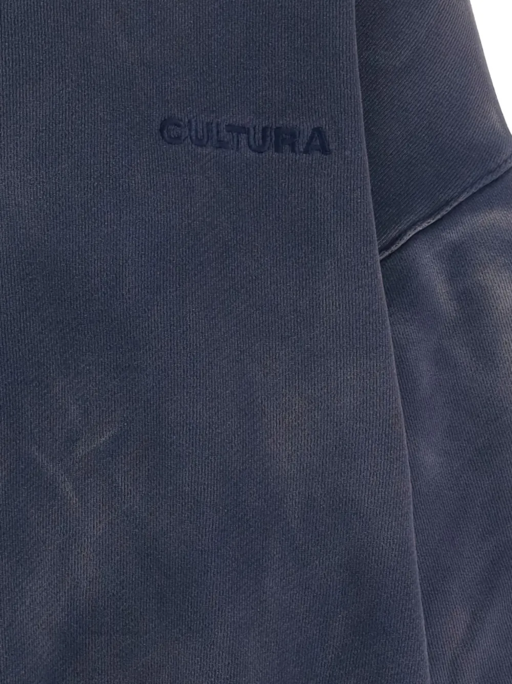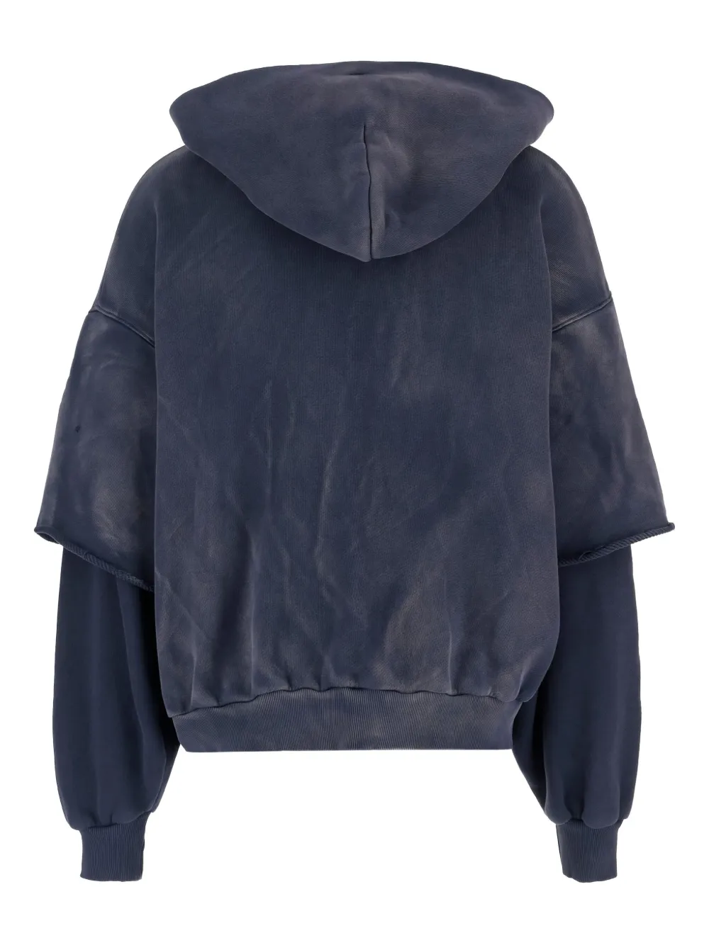 Синий худи с эффектом вываренной ткани, тон в тон вышитым логотипом, двойными рукавами и ребристыми краями