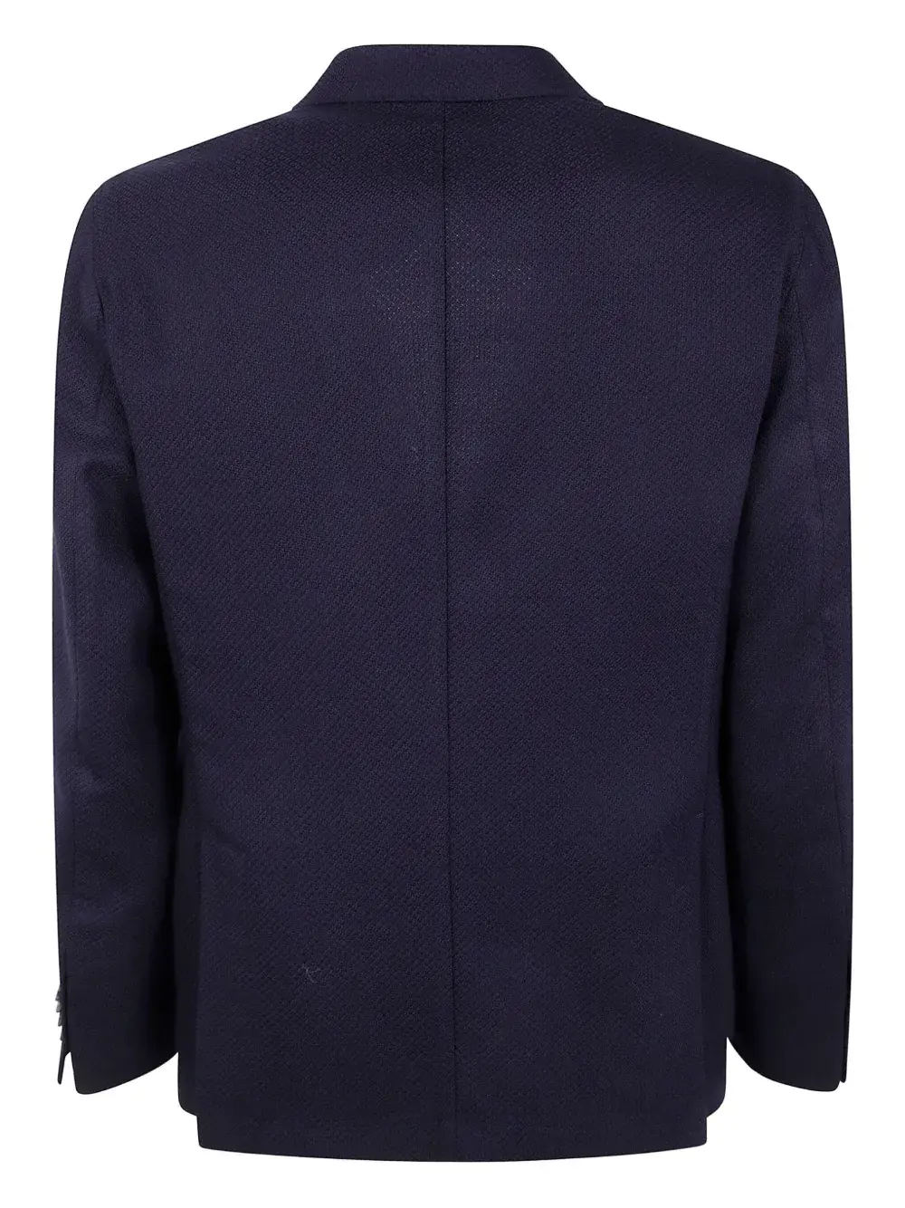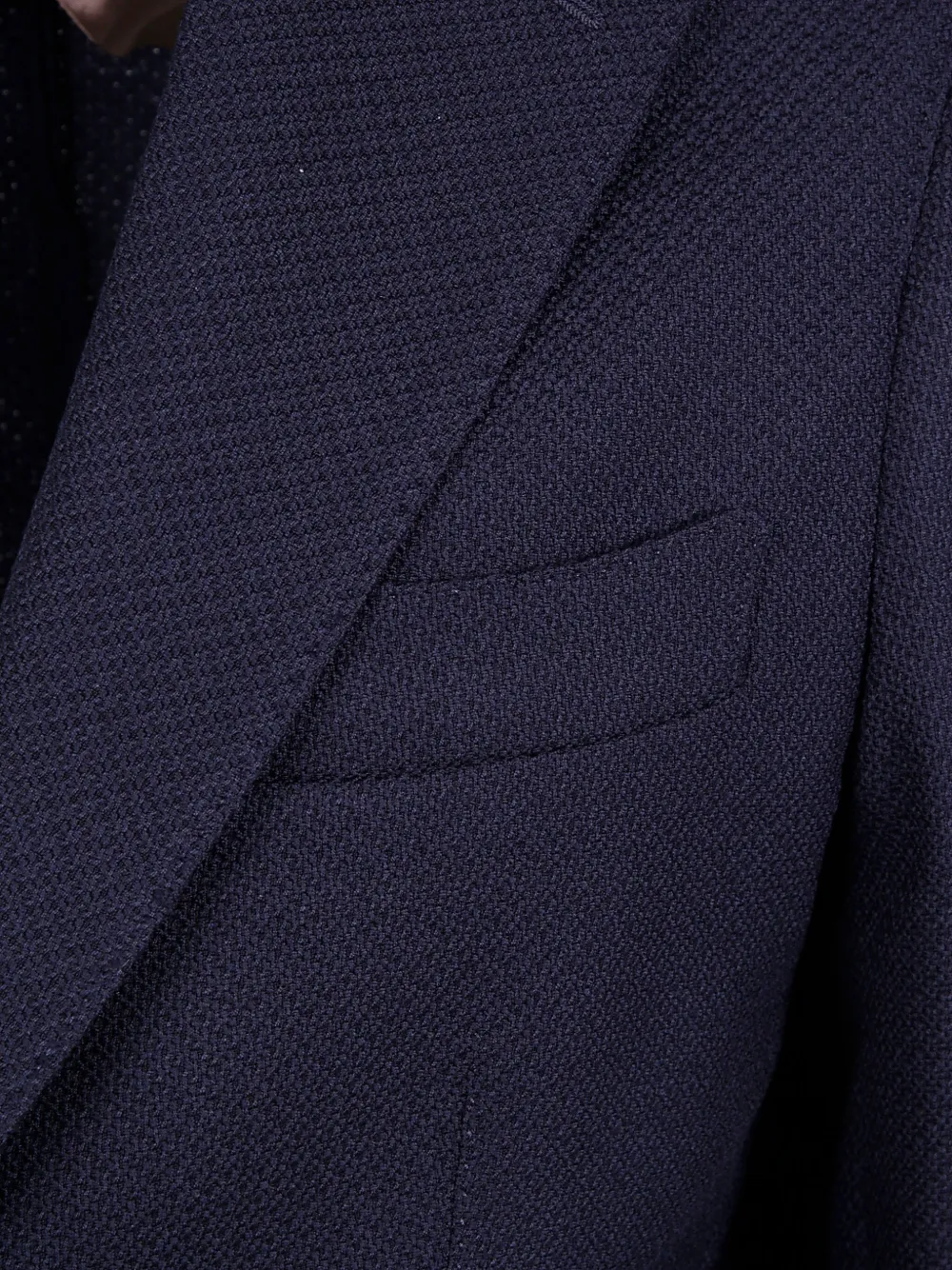 Синий пиджак с текстурированной отделкой, застежкой на пуговицы, накладными карманами и лацканами с вырезом