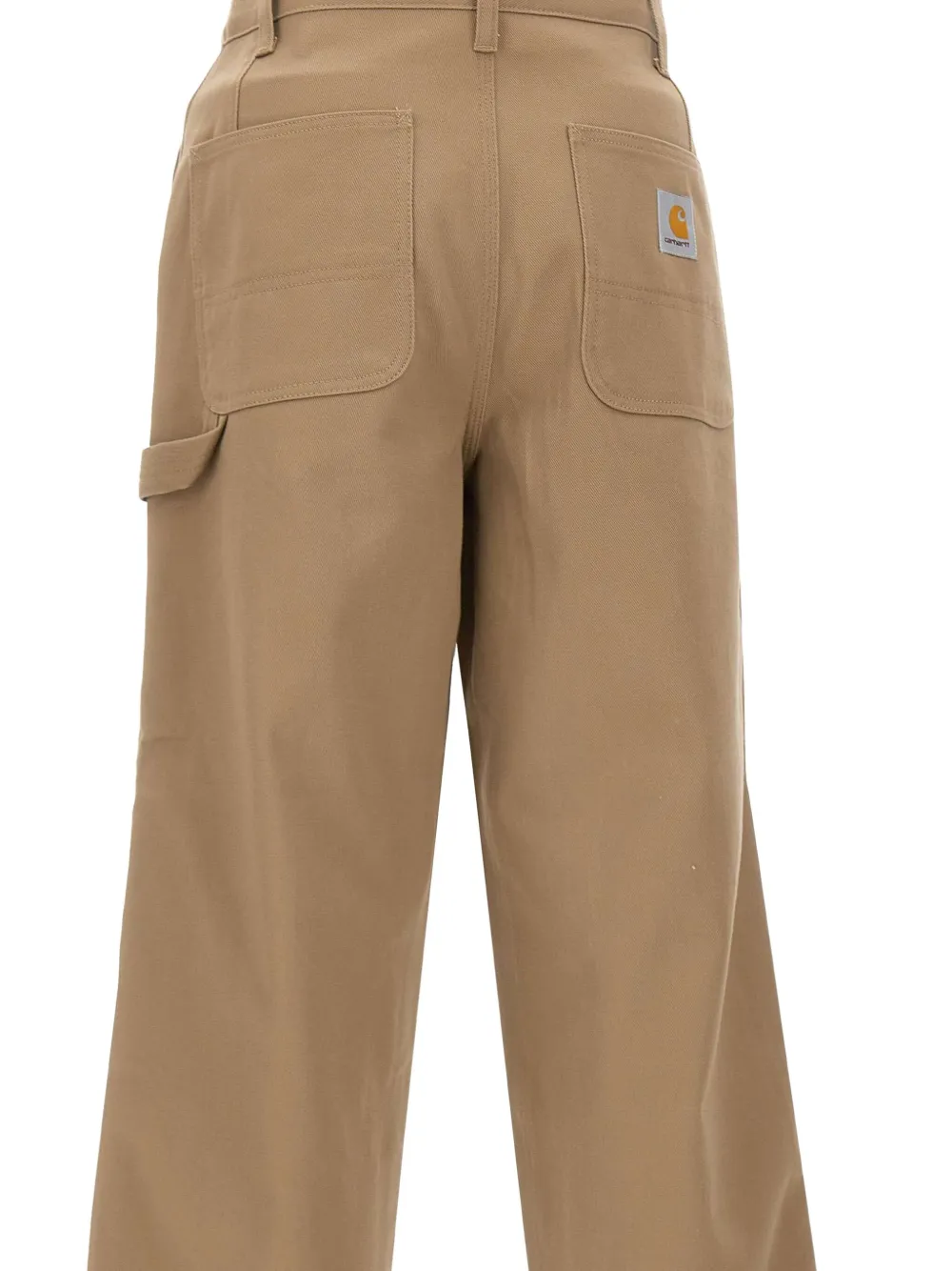 Коричневый хлопковый твил, вытачки спереди, петля для молотка, усиленные задние карманы, тройная прострочка
