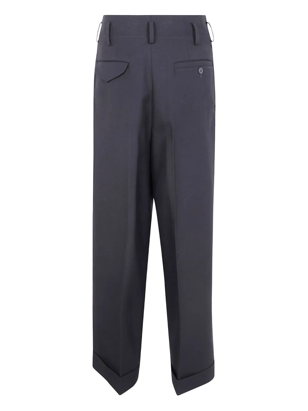 Черные плиссированные брюки с манжетами, двумя задними карманами, шлевками для ремня и застежкой на пуговицу