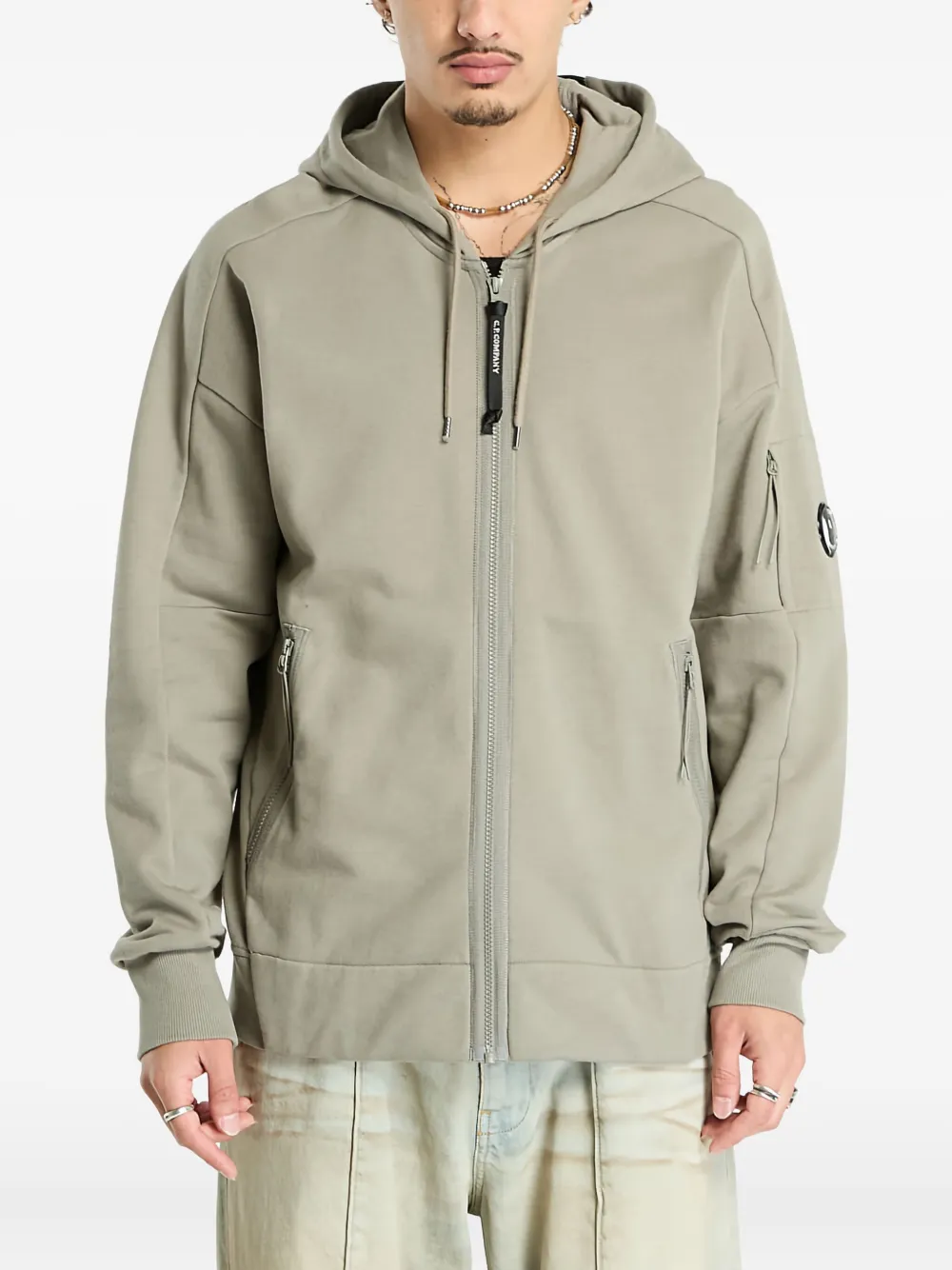 Хлопковое худи на молнии C.P. Company, серый 42 481₽