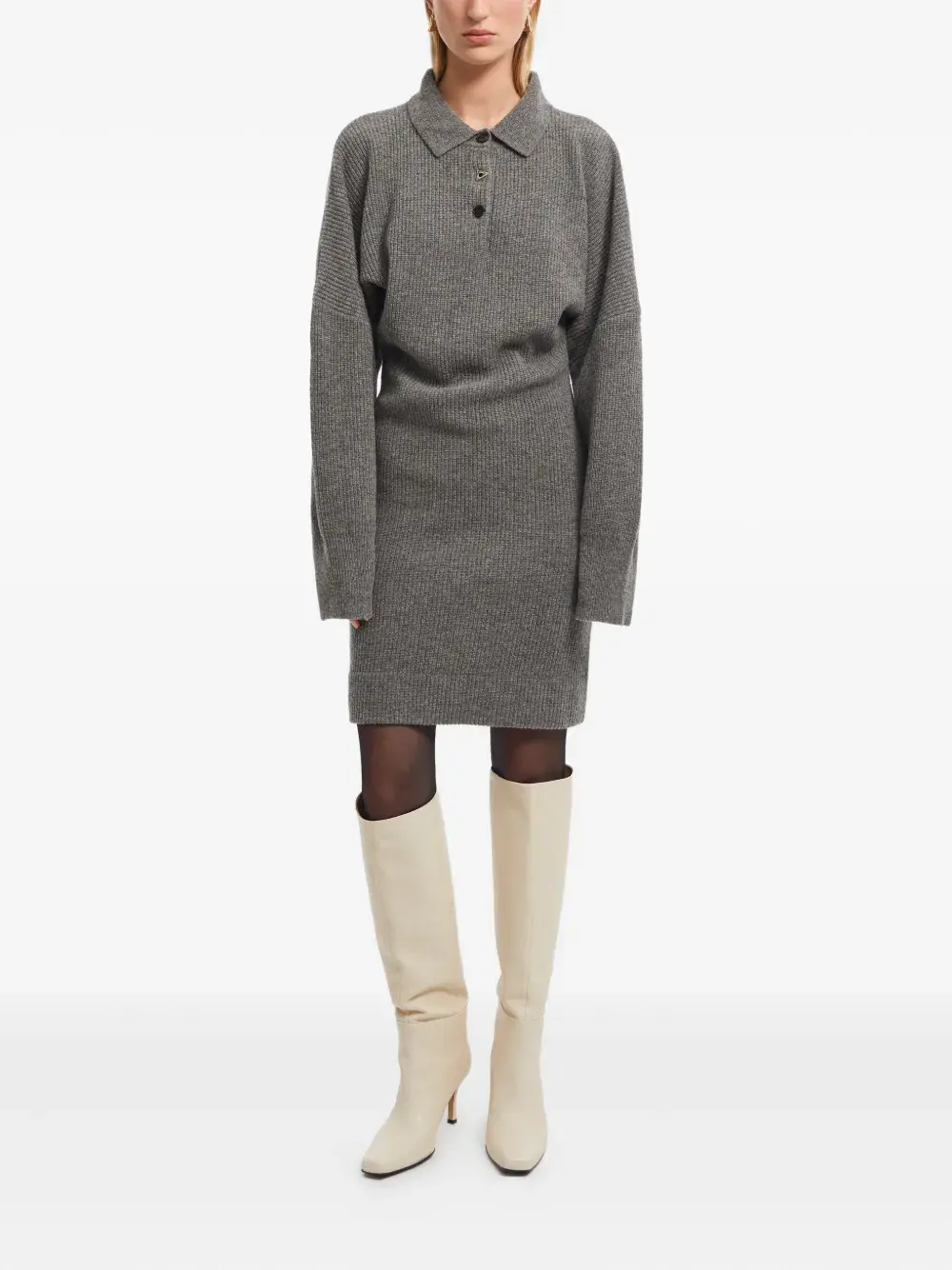 Платье мини в рубчик с воротником поло Aeron, серый