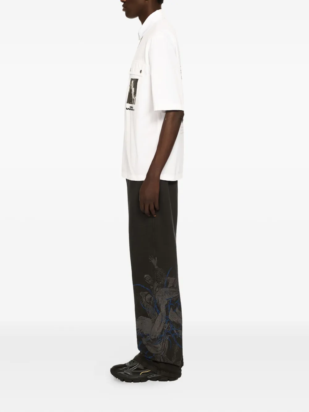 Белый воротник с острыми концами, застежка-молния, короткие рукава, графический принт спереди, звездный мотив сзади