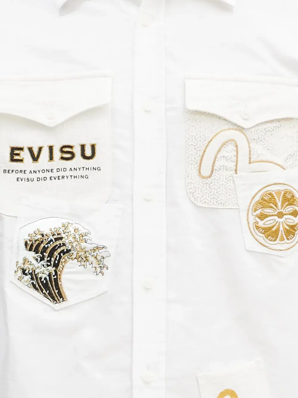 Рубашка с вышивкой на кармане Evisu, белый 30 926₽