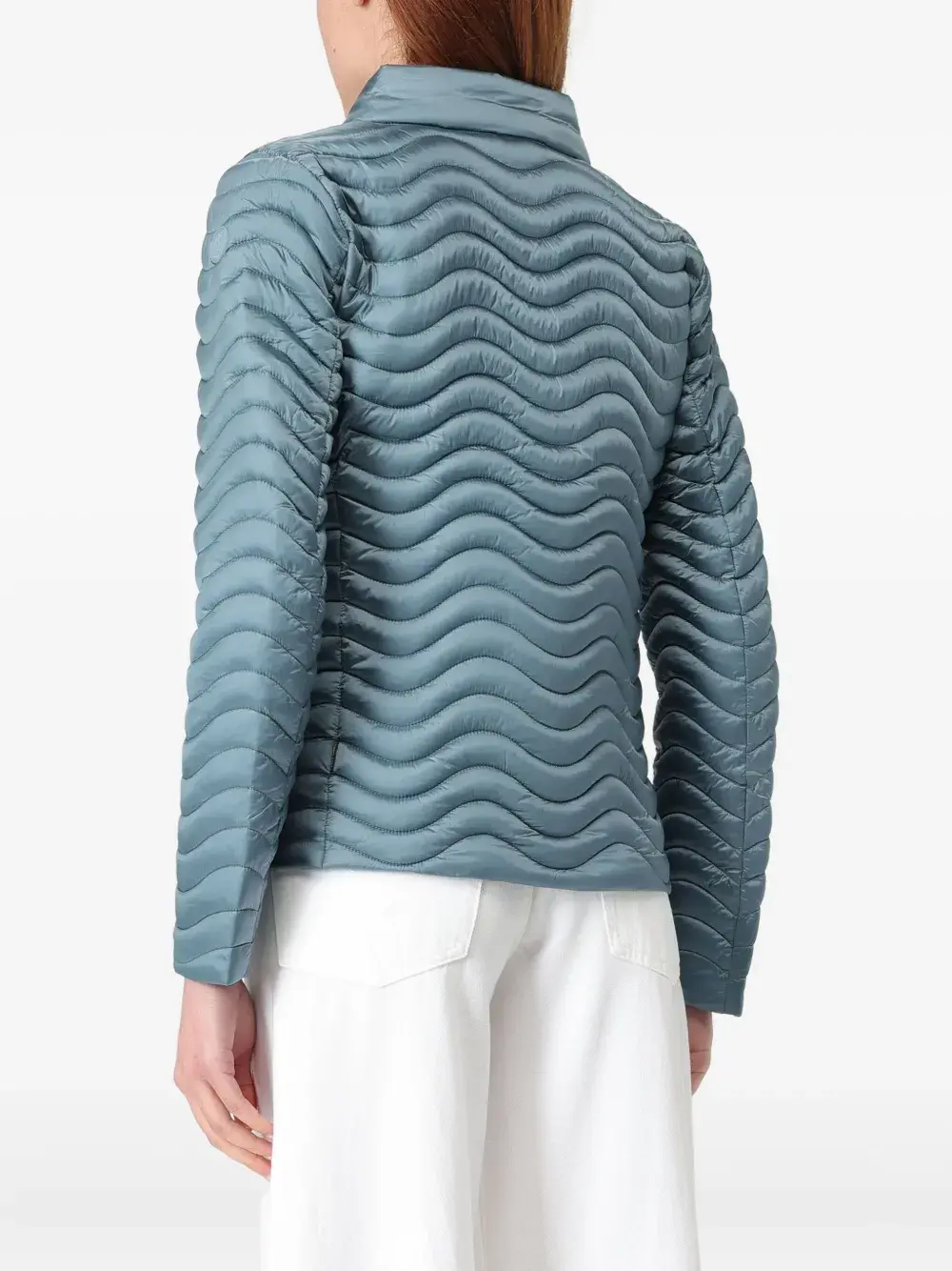 Светло-голубой стеганый волнообразный дизайн, застежка-молния, высокий воротник, длинные рукава, боковые карманы на молнии